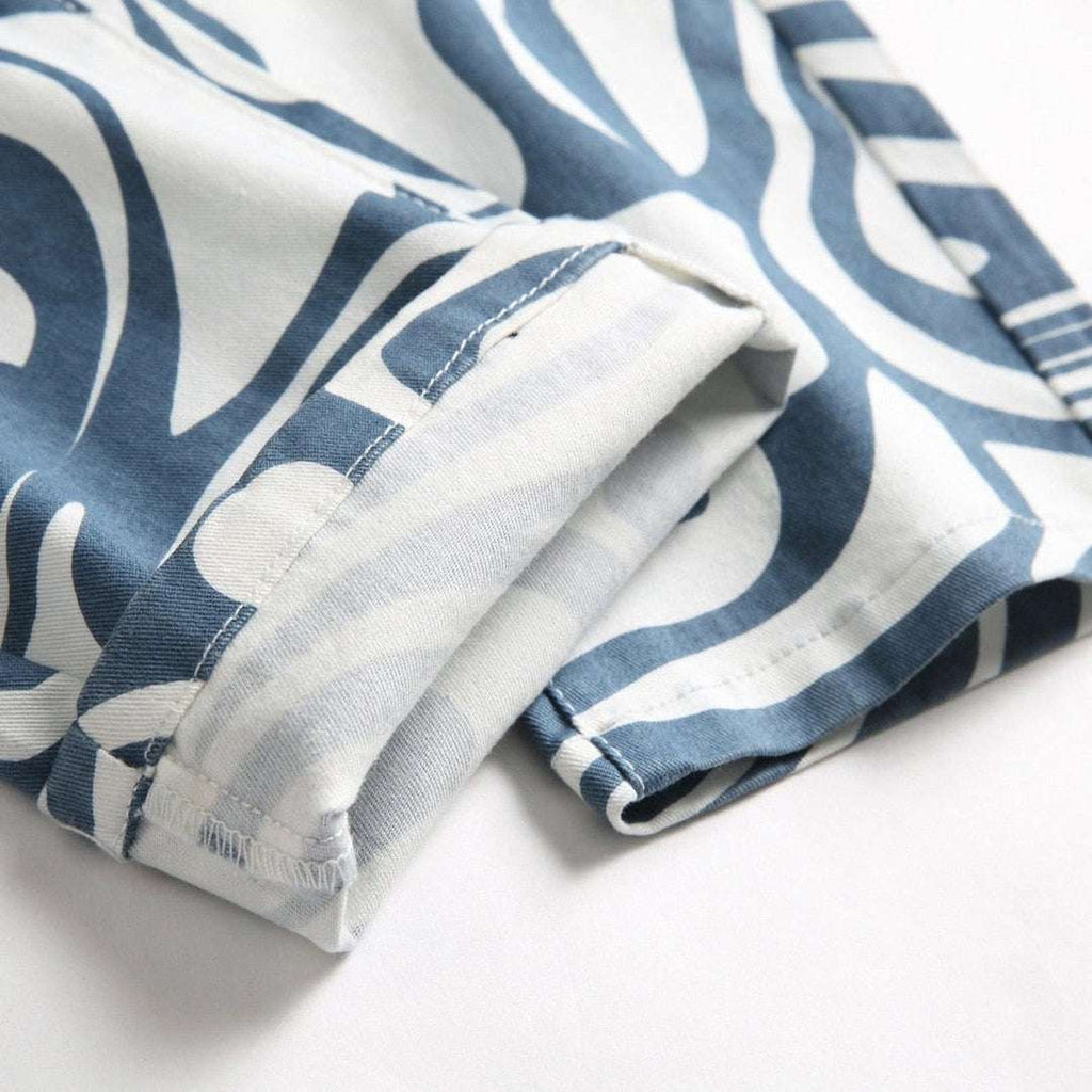 Experience the flair renaissance with our blue ornament print jeans. Perfect for the daring trendsetters. these jeans will make you stand out in a crowd. Get ready to make an impression with our unique and stylish jeans. Get yours now!