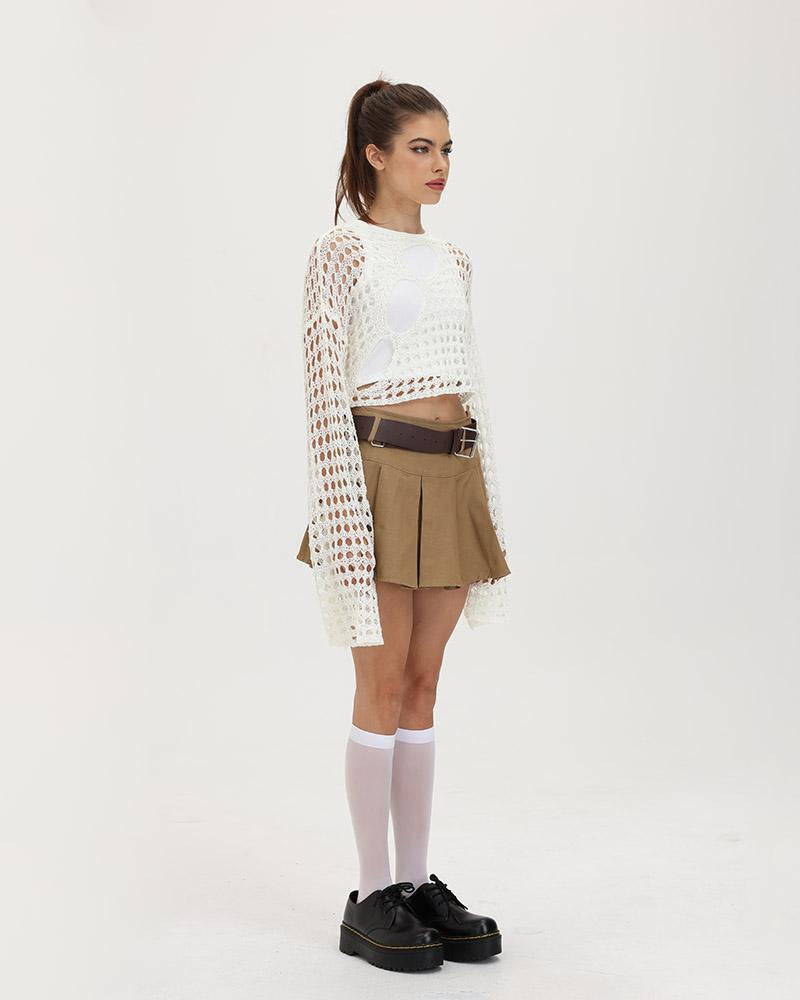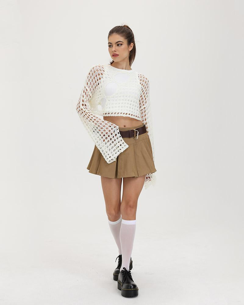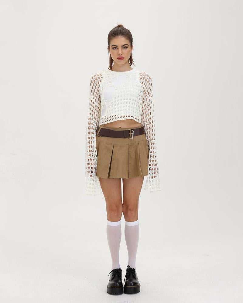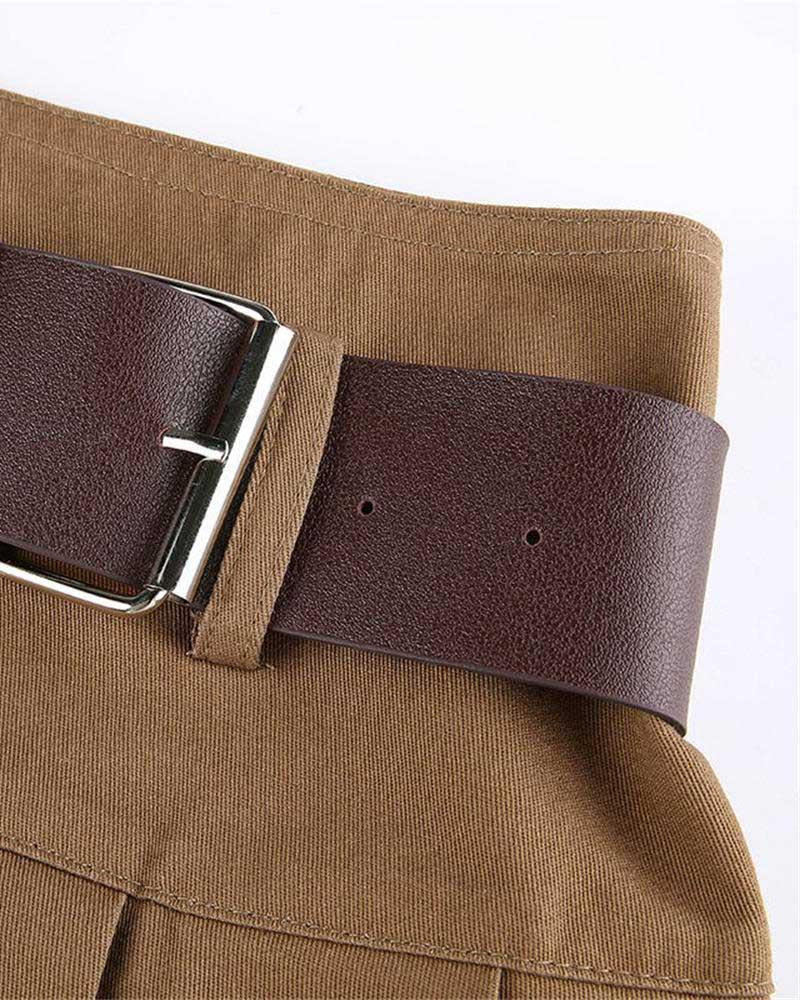 Details: High-wasted pleated skirt withbelt design