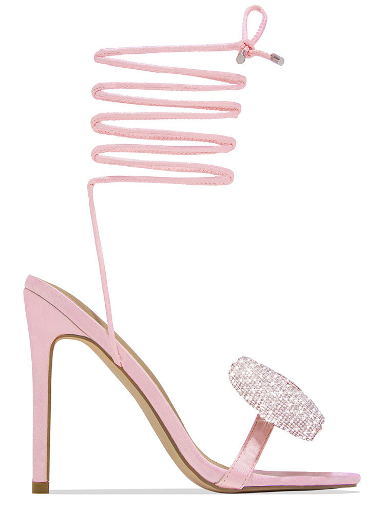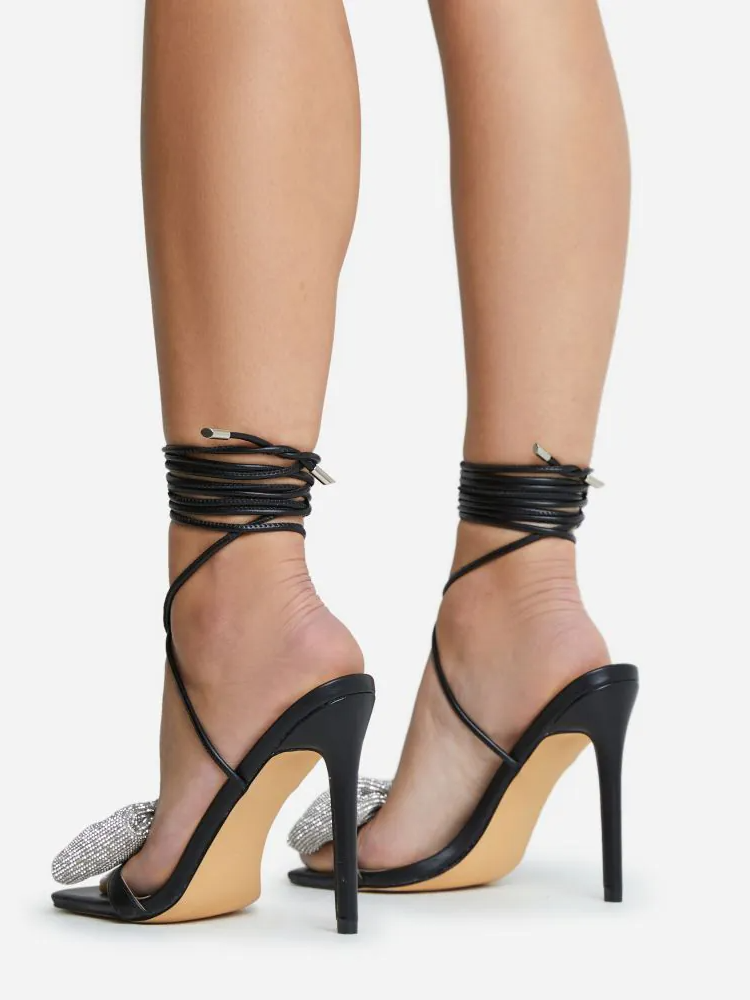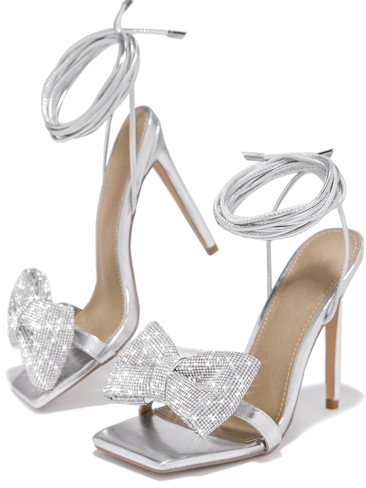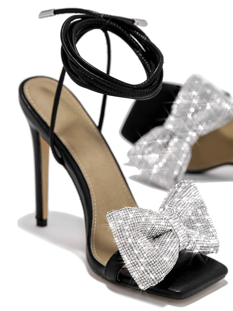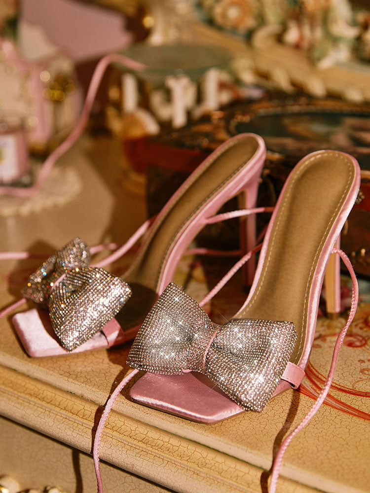 Bow Rhinestone Lace-up Heels