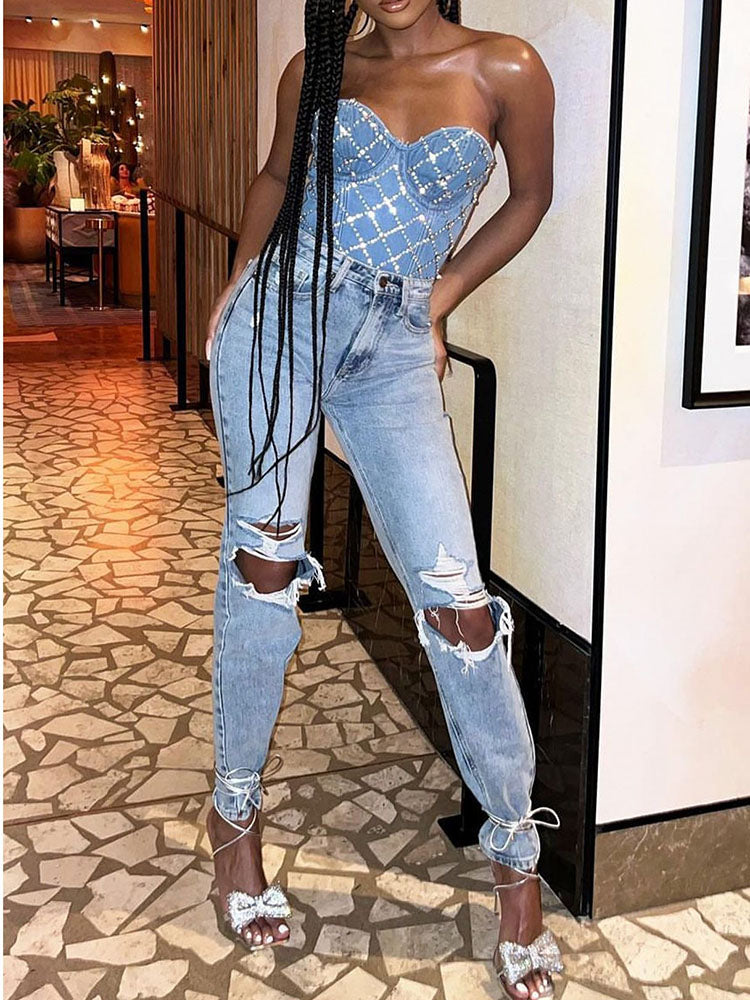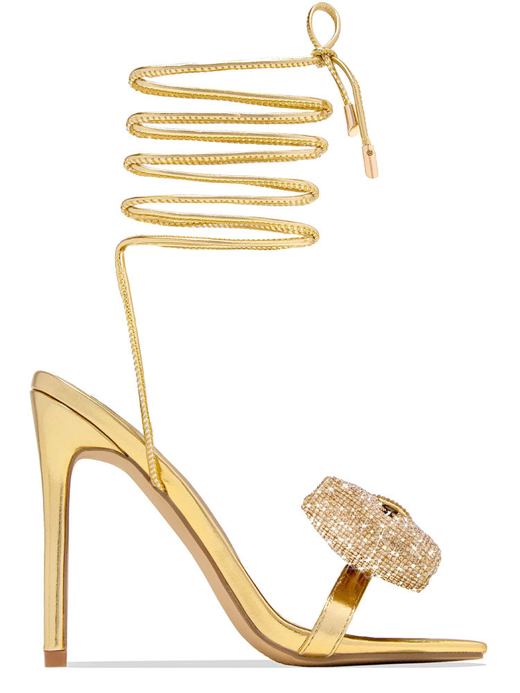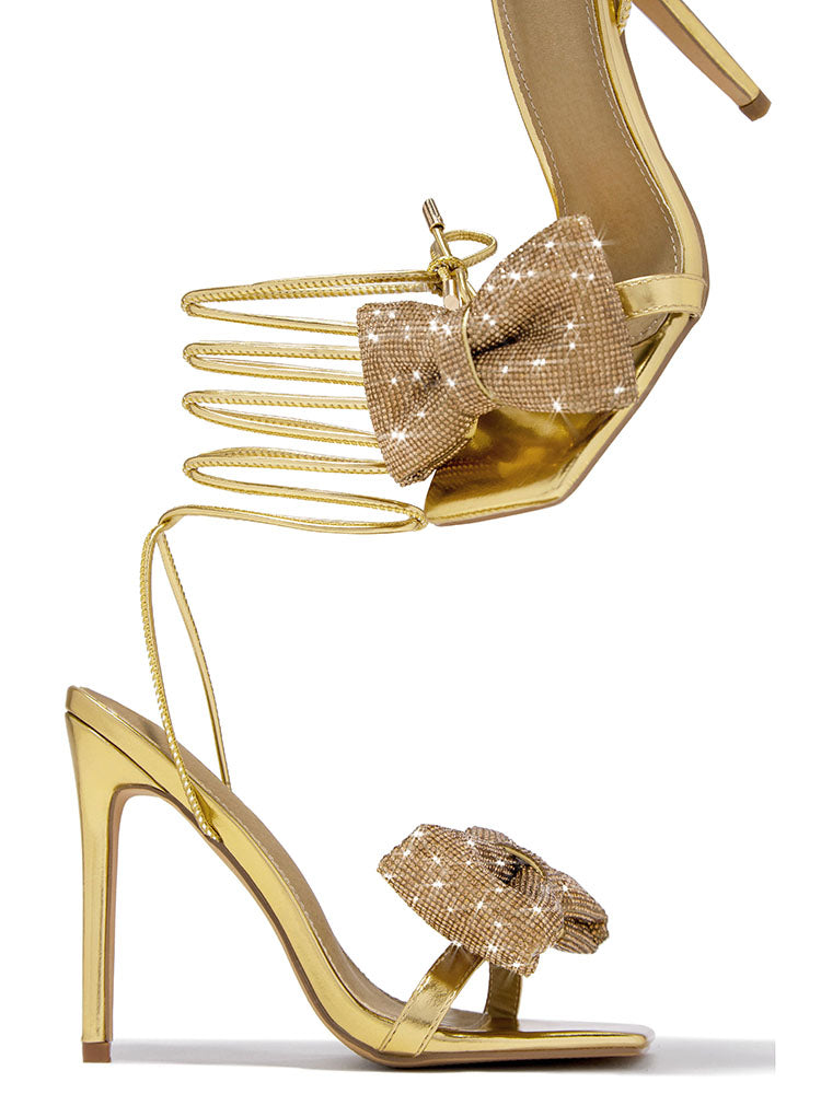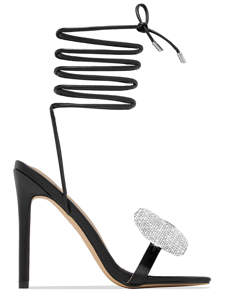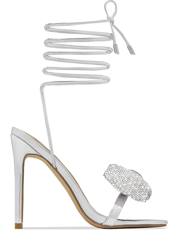 Bow Rhinestone Lace-up Heels
