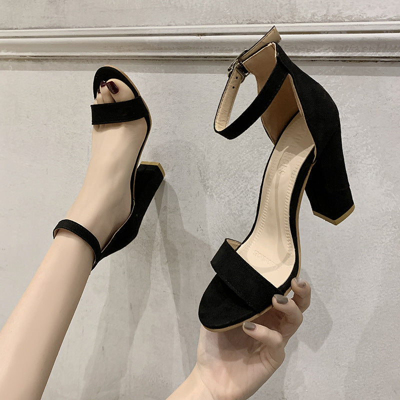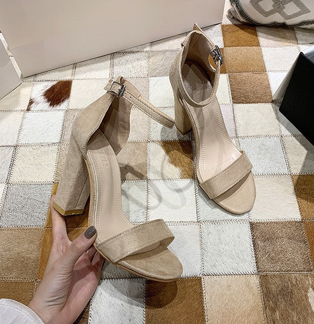 Bring it back to basics in heels that go with everything! Perfect for your next date night and workwear outfit. these heels are a must. The heels feature a wide velcro ankle strap for a secure fit. an open almond toe. and a sturdy block heel. Complete your outfit with a ribbed sweater dress and fringe earrings.