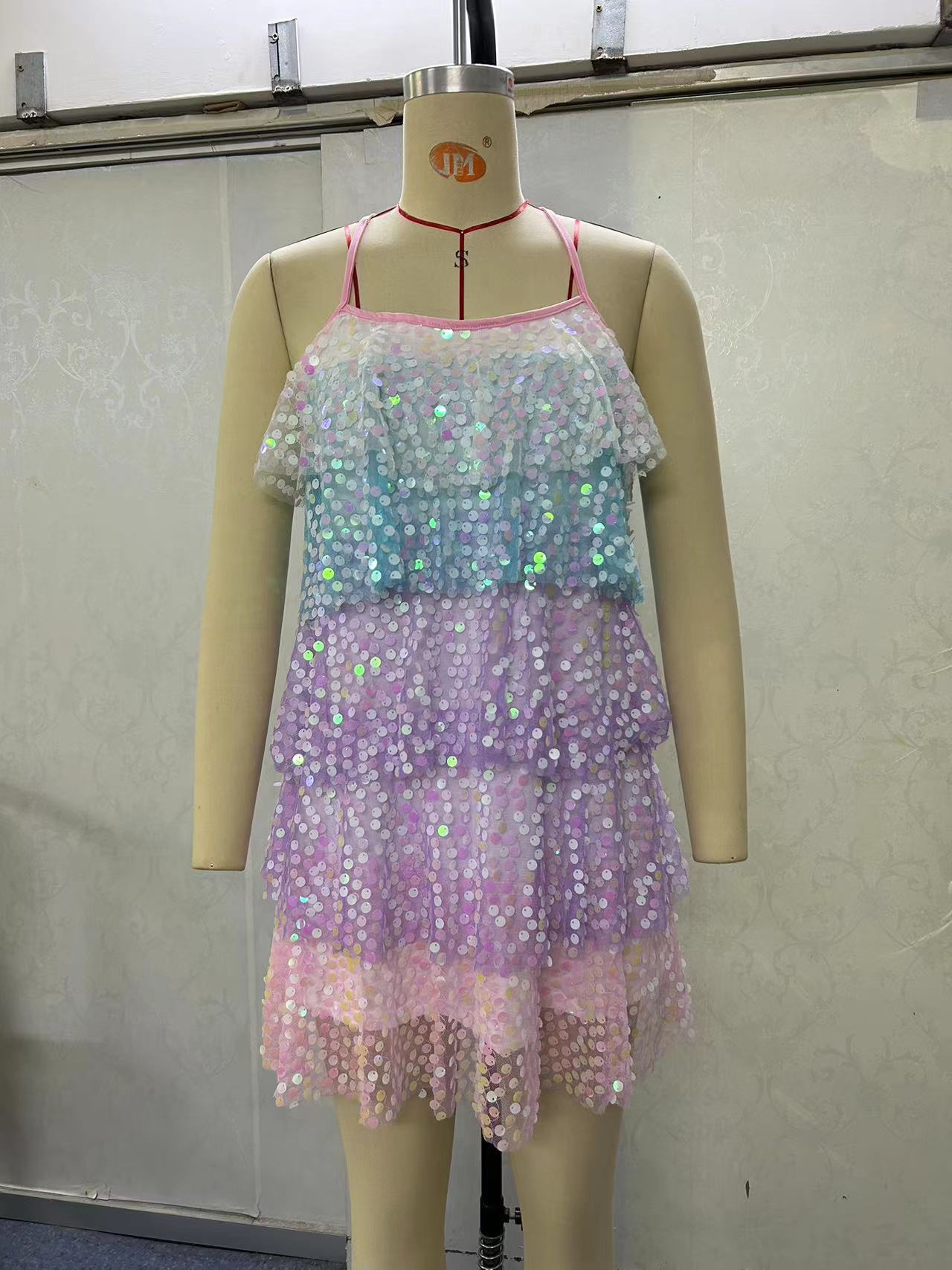 Shake it off in style with the Disco Tiered Sequin Dress! Featuring a unique tiered sequin bodice. you'll be the life of the party. Adjustable straps offer a perfect fit