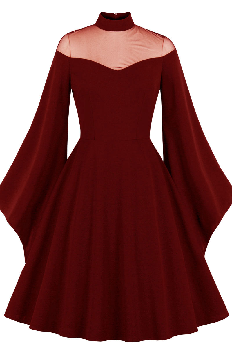 Chic Burgundy Long Sleeve A-Line Party Homecoming Dress.