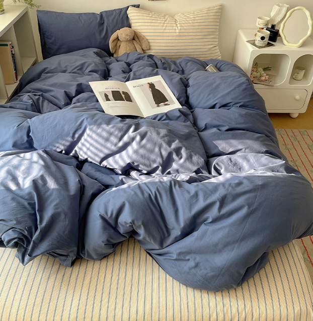 6.Blue: Plain blue duvet cover. plain pillow cases. and blue checkered bed sheet