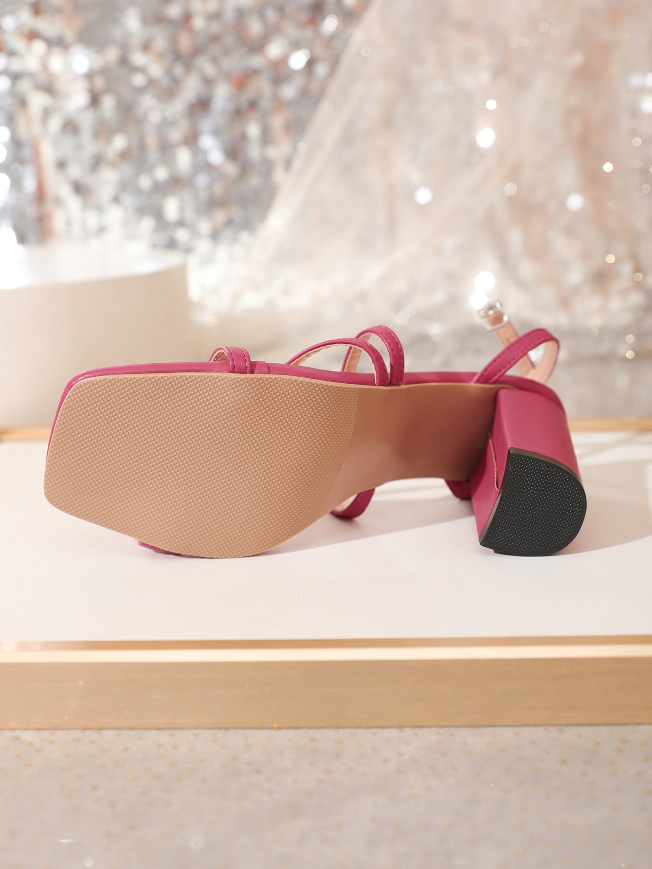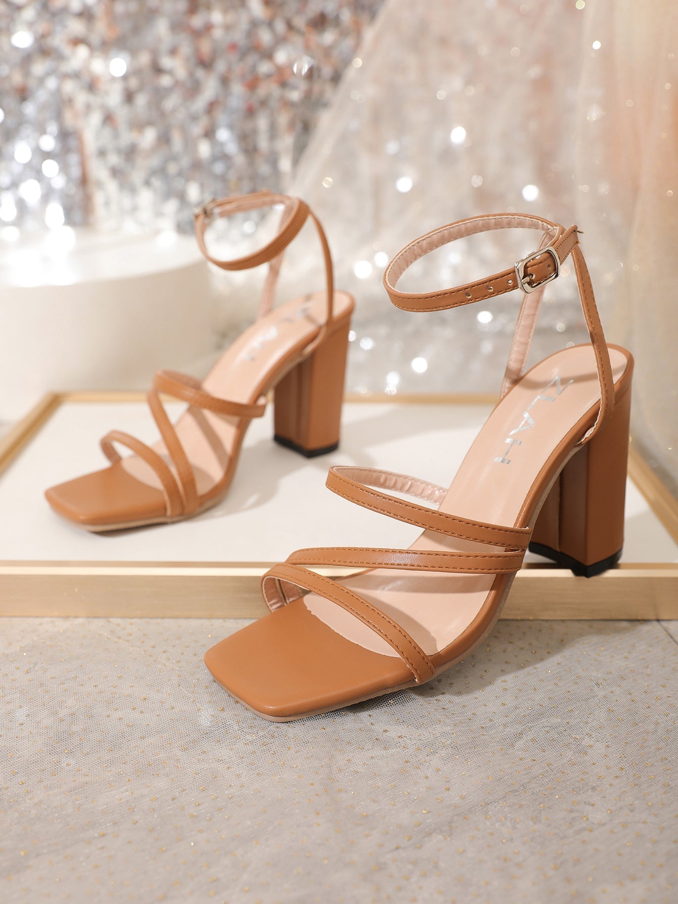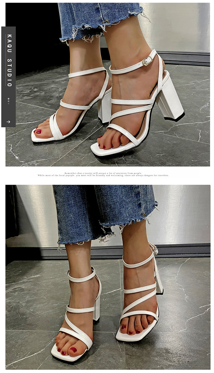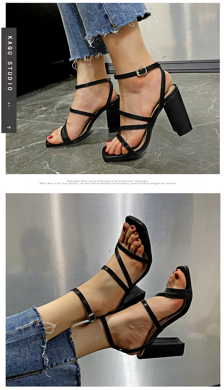 Elevate your outfits with these chic and strappy block heels! They feature an open square toe. a criss-cross strappy design. an adjustable ankle strap. and a thick block heel. Style these shoes with a cute crossbody purse.
