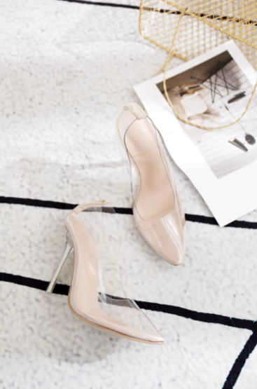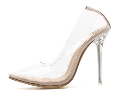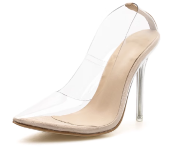 Keep it classy in a pair of pumps that are perf for your workwear and chic outfits! The pumps feature an open back. a clear strap at the heel. an adjustable ankle strap. a clear pointed toe. and a stiletto heel. Complete look with a blazer and skirt combination.