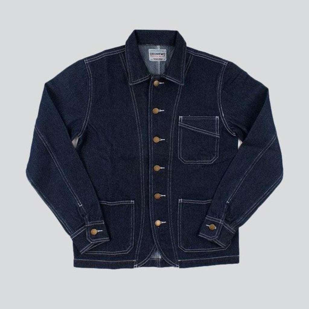 Introducing the timeless vibe dark blue men's jacket from our 2023 Autumn Collection the perfect blend of conventional style and couture panache!