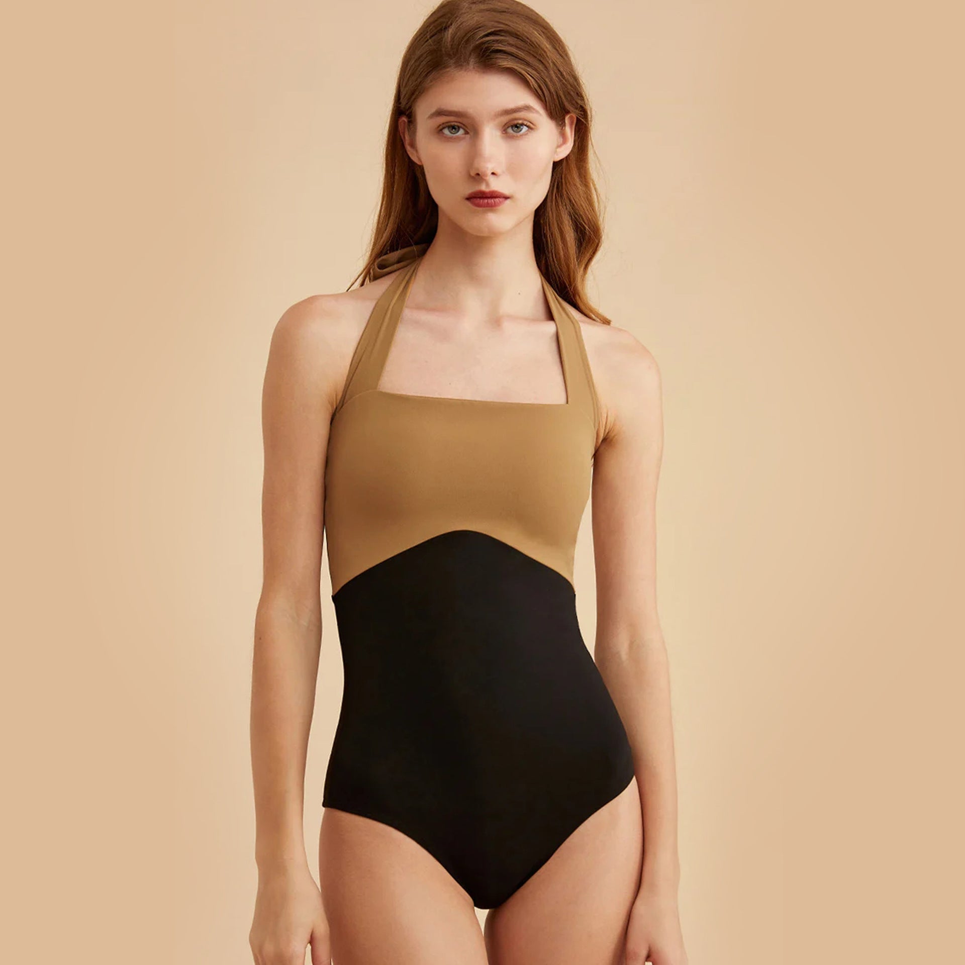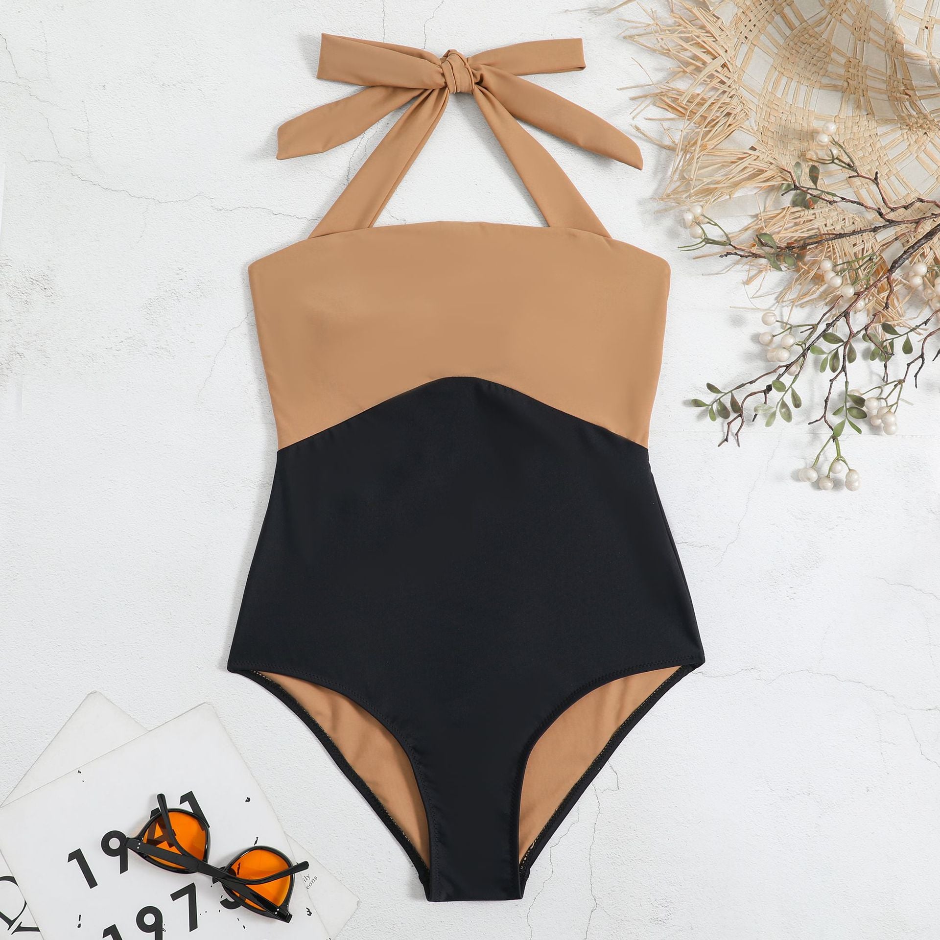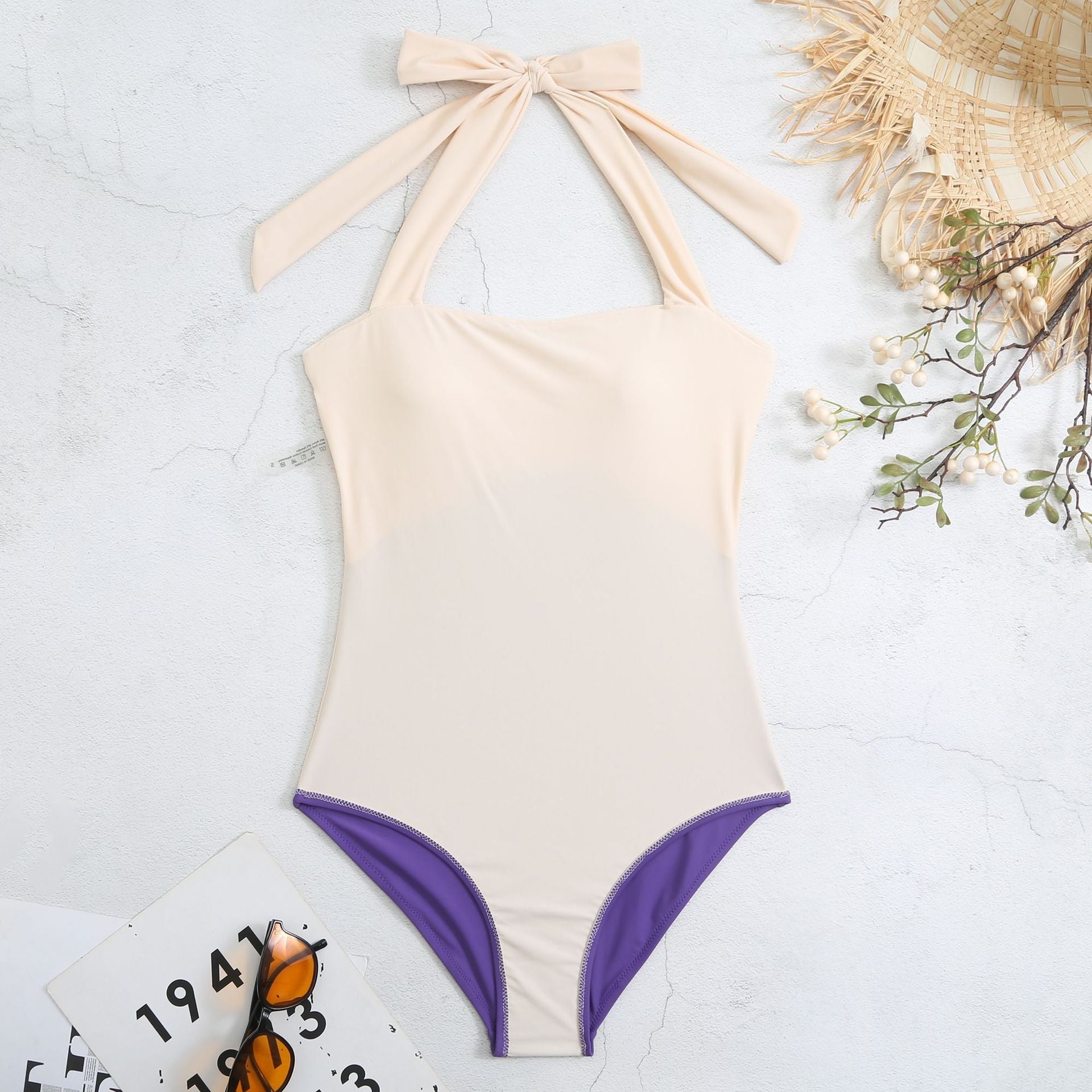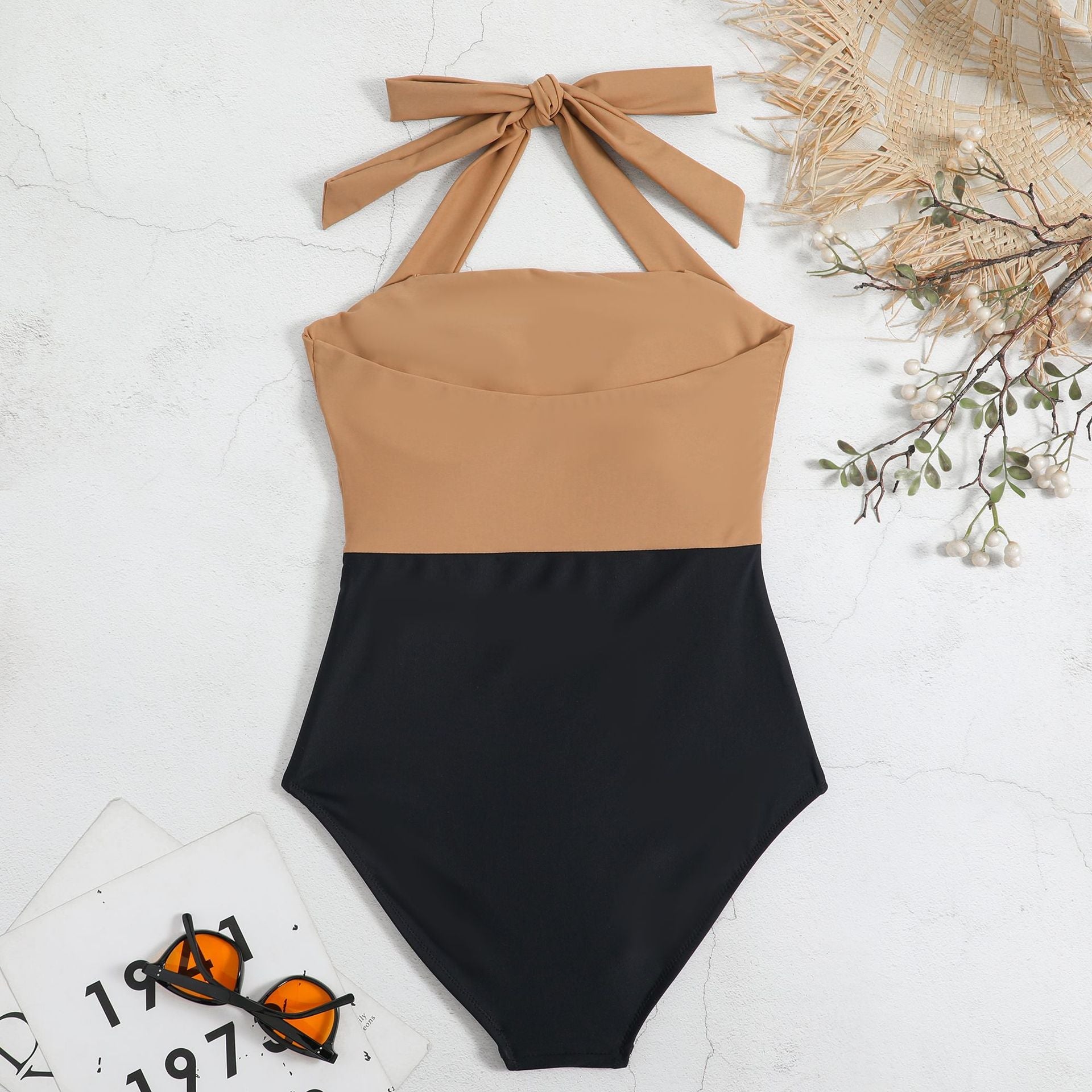 Product details Name: Women Bathing Suit Gender: Women Material: Polyester Collar: Halter Neck Sleeve length: Sleeveless Pattern: Contrast Color Size: S/M/L/XL