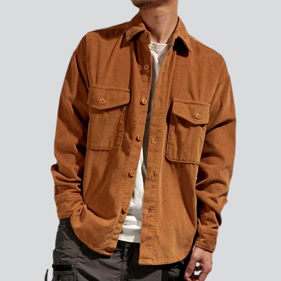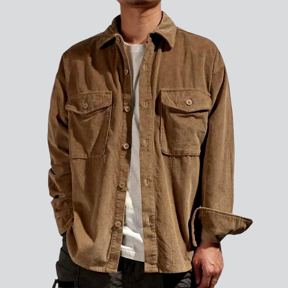 Discover our bold and stylish men's corduroy denim jacket from the 2023 Autumn-Winter Collection a perfect blend of carefree flair and vogue sophistication!