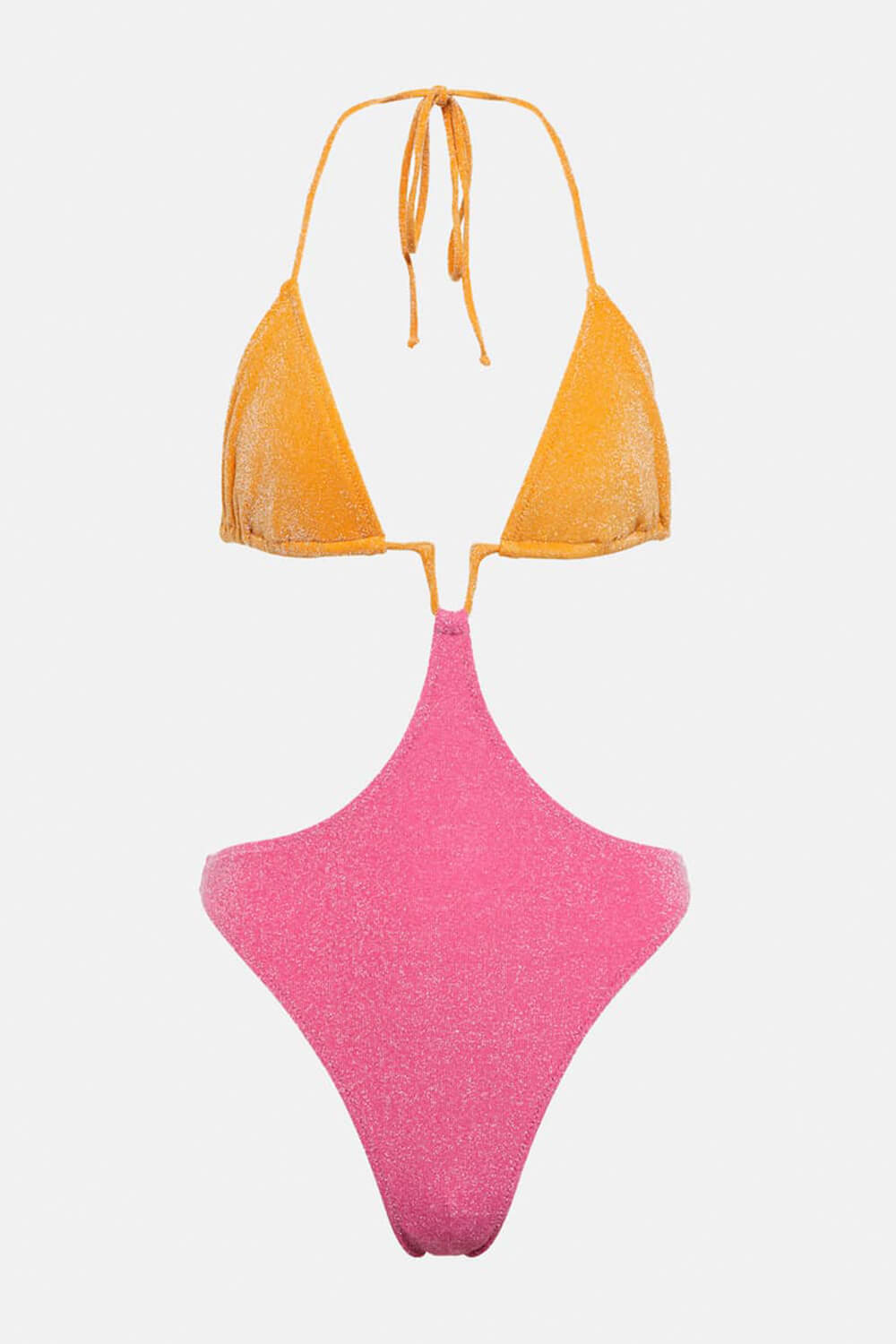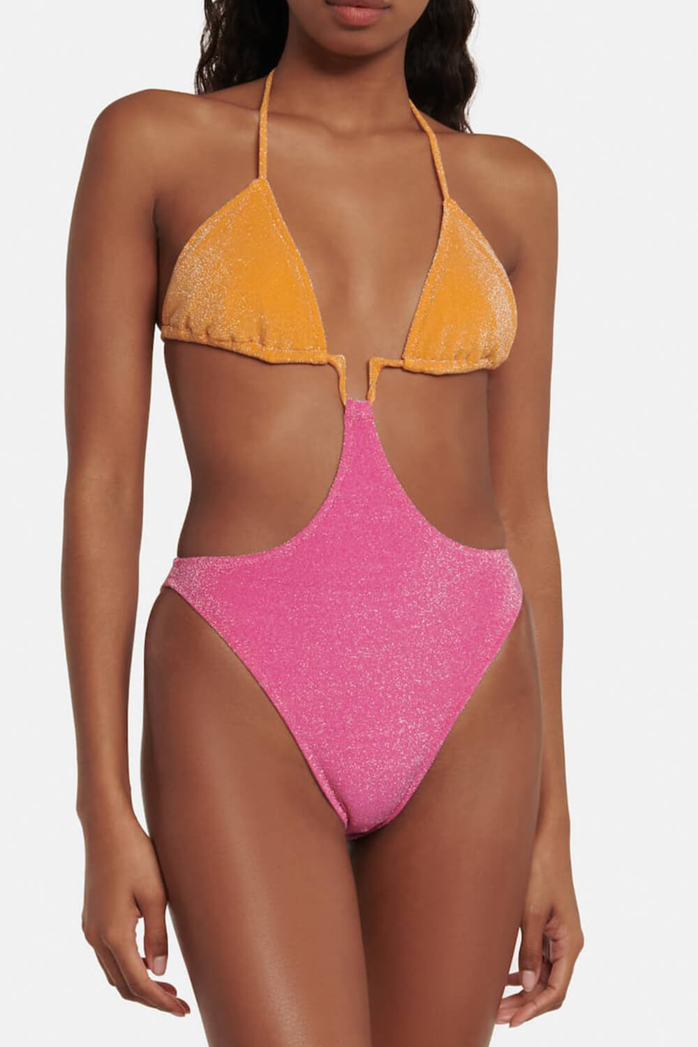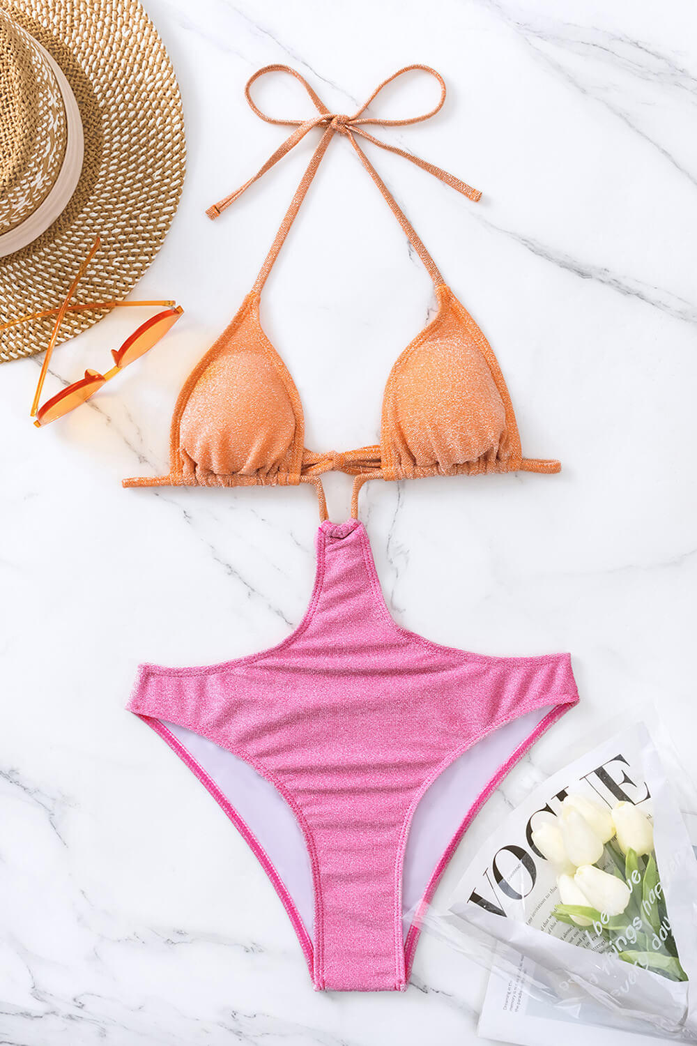 Colorblock Shimmer Cut-Out Halter One Piece Swimsuit