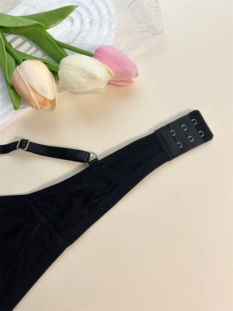 Comfy Breathable Contrast Mesh Bras Wireless Push Up Bra Black