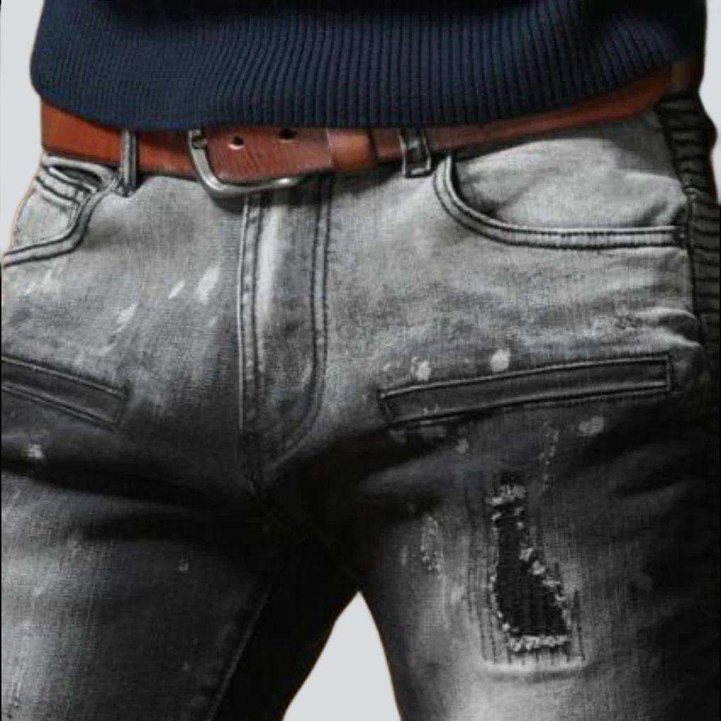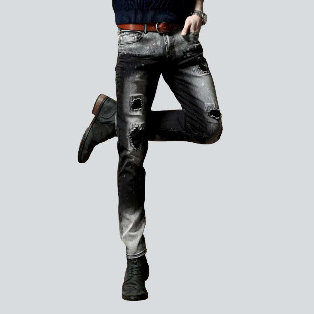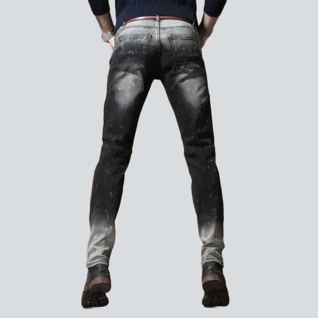 Introducing the 2023 Autumn Collection's Contrast Bleach Slim Men's Jeans a rough-style masterpiece that exudes ageless sophistication!