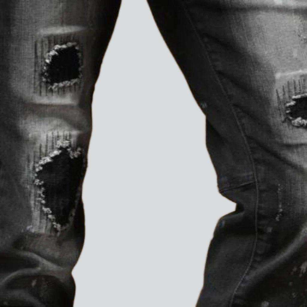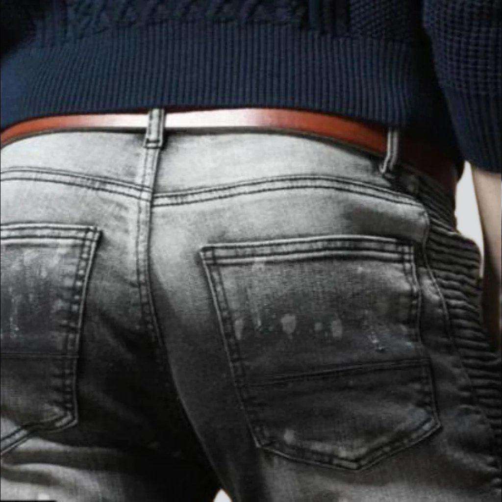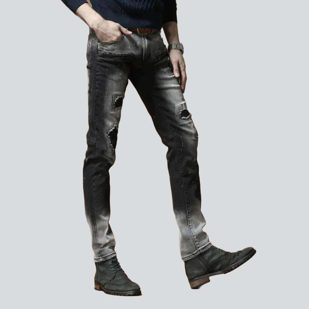 Introducing the 2023 Autumn Collection's Contrast Bleach Slim Men's Jeans a rough-style masterpiece that exudes ageless sophistication!