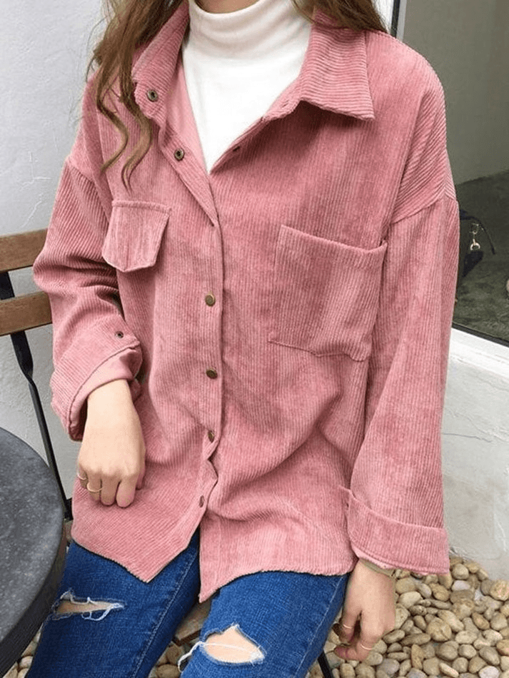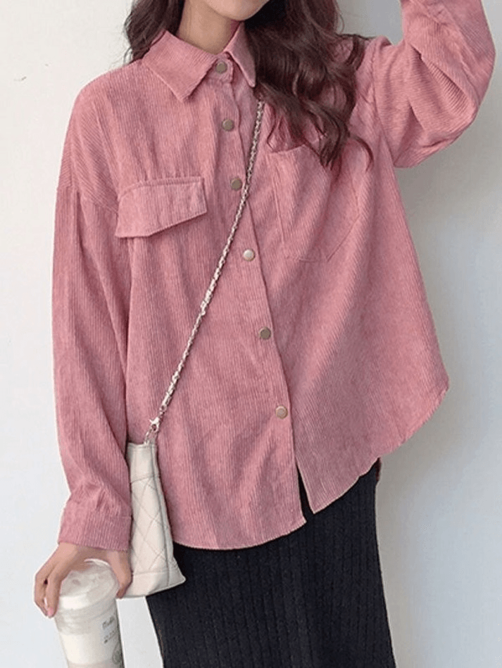 Corduroy Long Sleeve Button Blouse