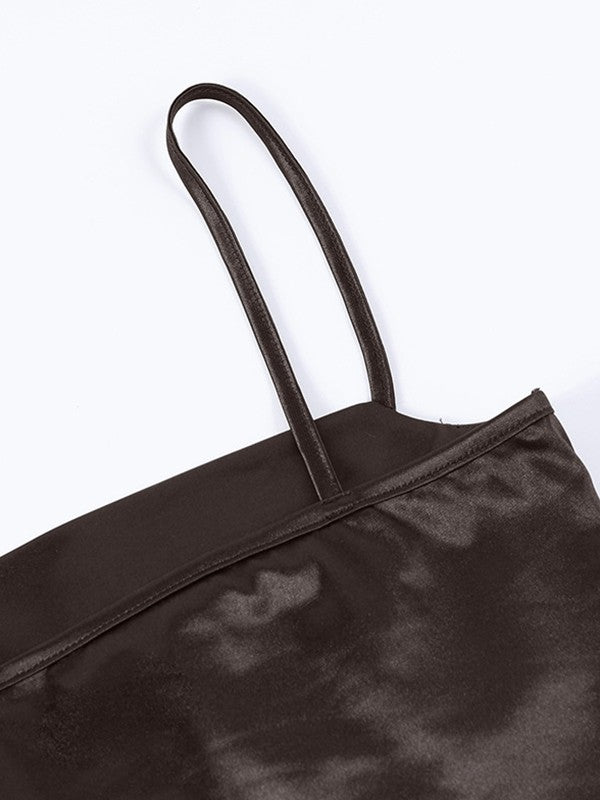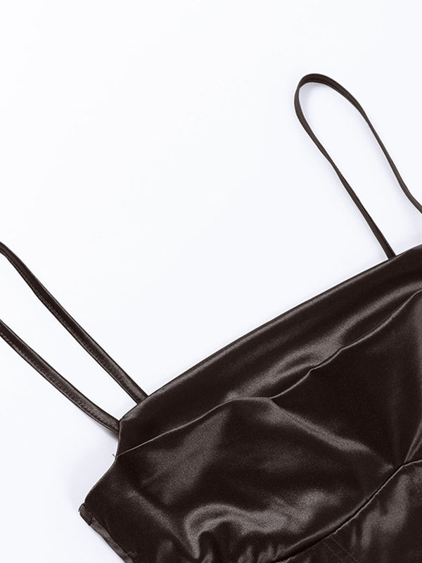 Description: Perfect for date night outfits or festival seasons. these staple corset tops crafted from satin fabric. cuts to a skin-tight silhouette. features double layered material on the chest. with an open back and paneled seam design.
