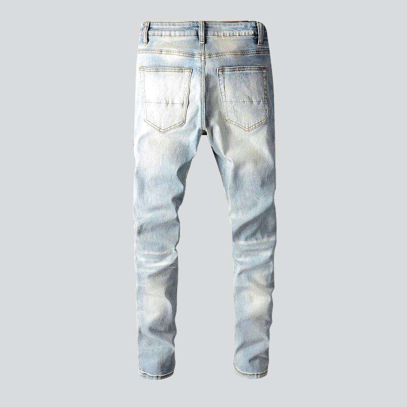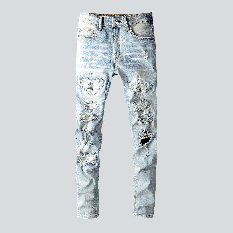 Introducing our crystal-embellished patchwork men's jeans from the 2023 Spring-Summer Collection a stylish take on the Y2K trend that promises to make you the star of the show!
