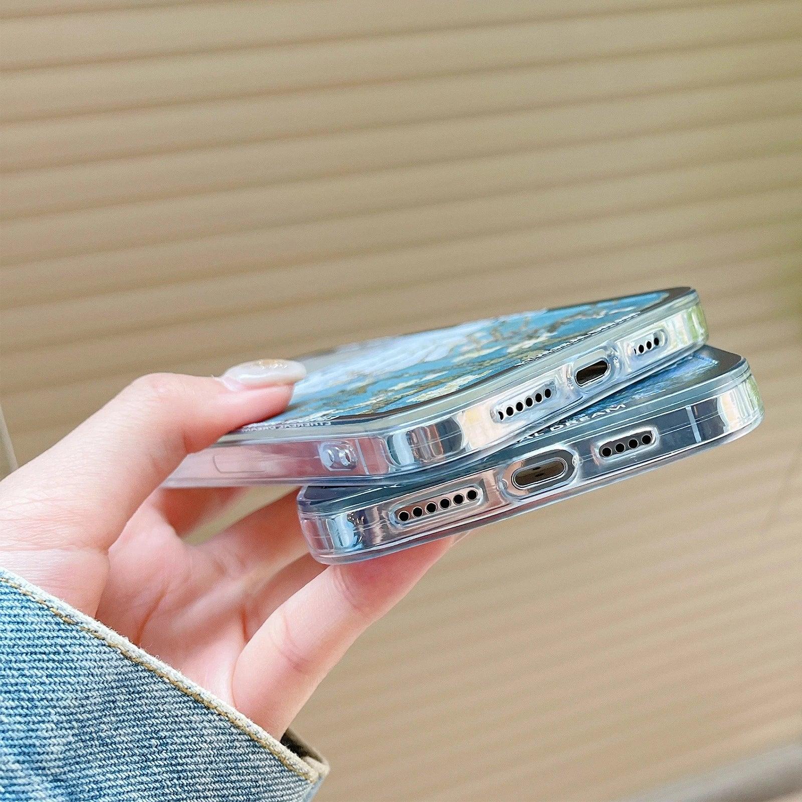 This cute phone case is perfect for your iPhone 11. 12. 13. 7. 8. Plus. XS Max. X. or XR. It is made of soft TPU and has a clear cover with a beautiful art painting design. The case is lightweight and anti-fingerprint. and it provides shockproof protection for your phone. It is also easy to install and remove.