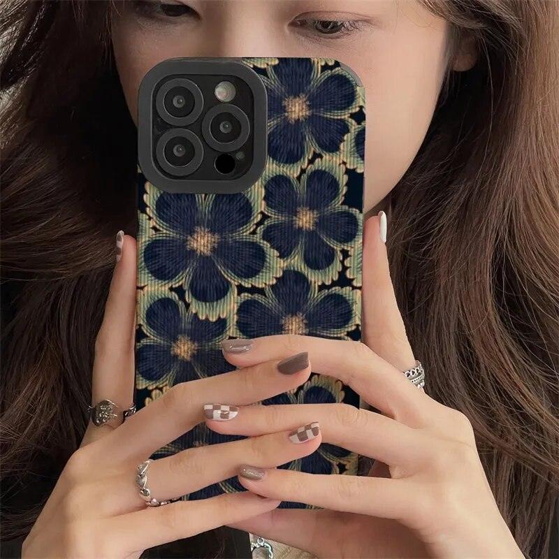 This phone case seamlessly merges style and functionality. using top-tier soft silicone TPU that effectively absorbs shocks and repels scratches. Its remarkable resistance to dust and fingerprints maintains your phone's pristine appearance. The case provides comprehensive coverage for enhanced protection. The modern geometric pattern and dark graffiti flower design introduce a contemporary flair to your phone's aesthetics.