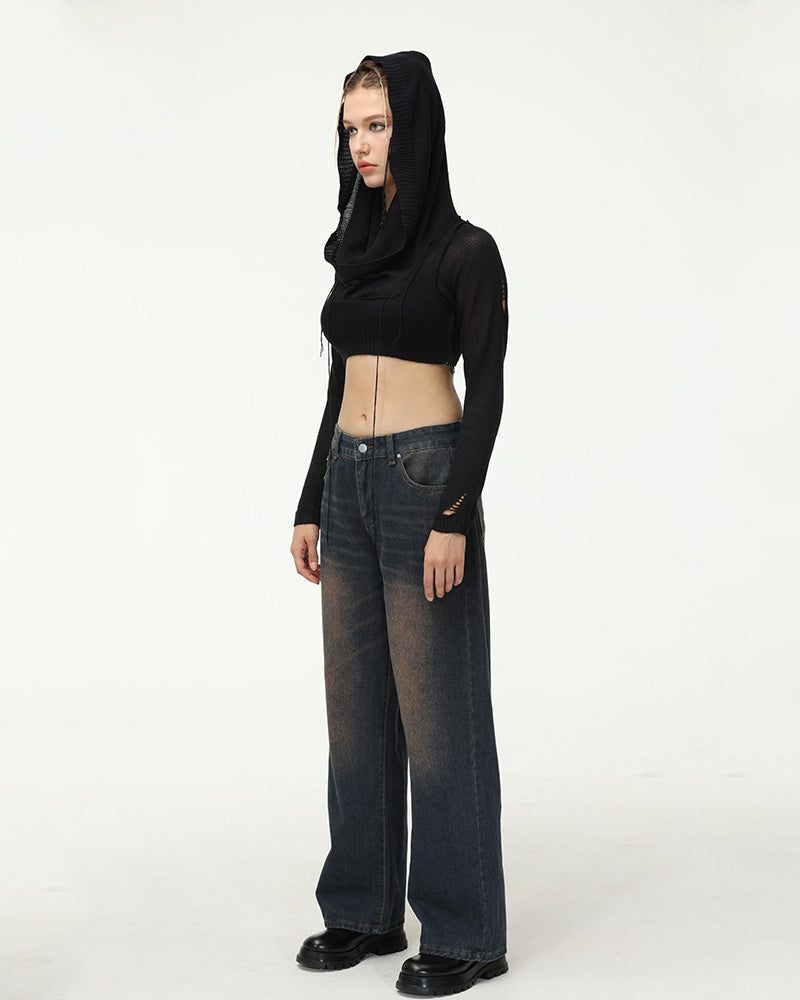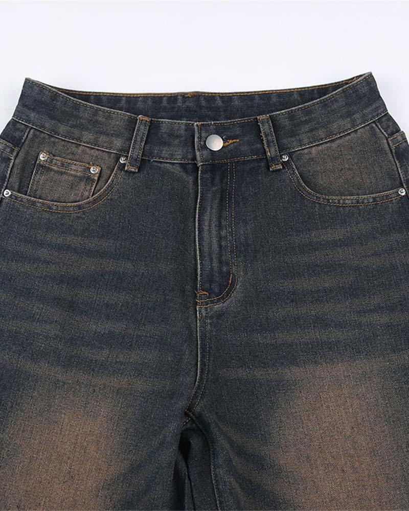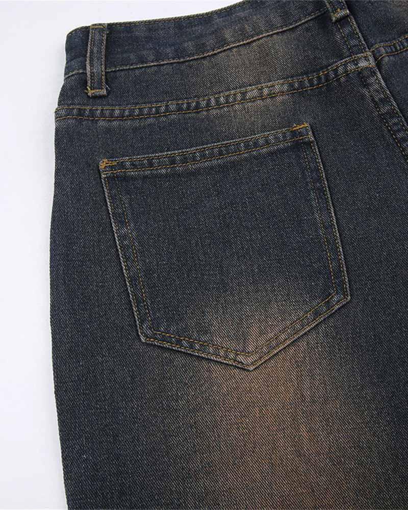 Details: Long cargo jeans with front color fading design
