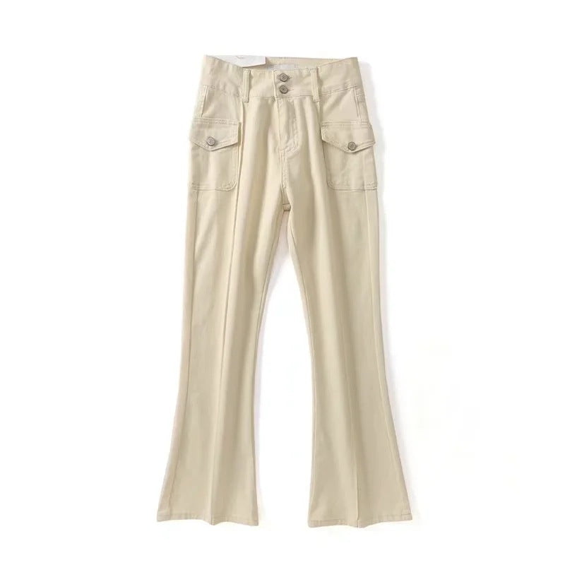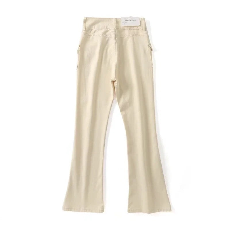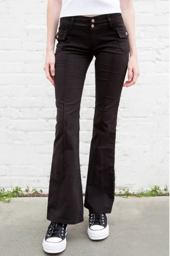 These low-waist. flare-leg jeans feature front seams with a unique double waistline. creating a look that is instantly eye-catching. The ultimate combination of contemporary design and classic style. these jeans are crafted with premium quality denim and a zipper & button closure for a sleek and resilient shape.