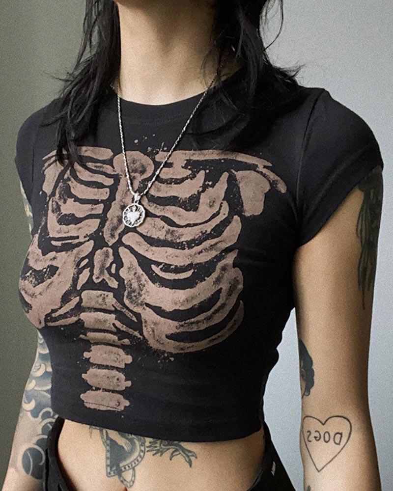 Details: Short-sleeve T-shirt with ribs and bones graphical design