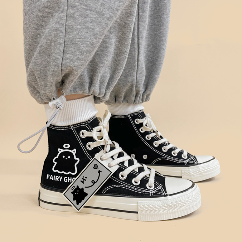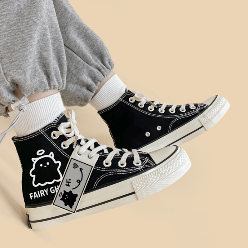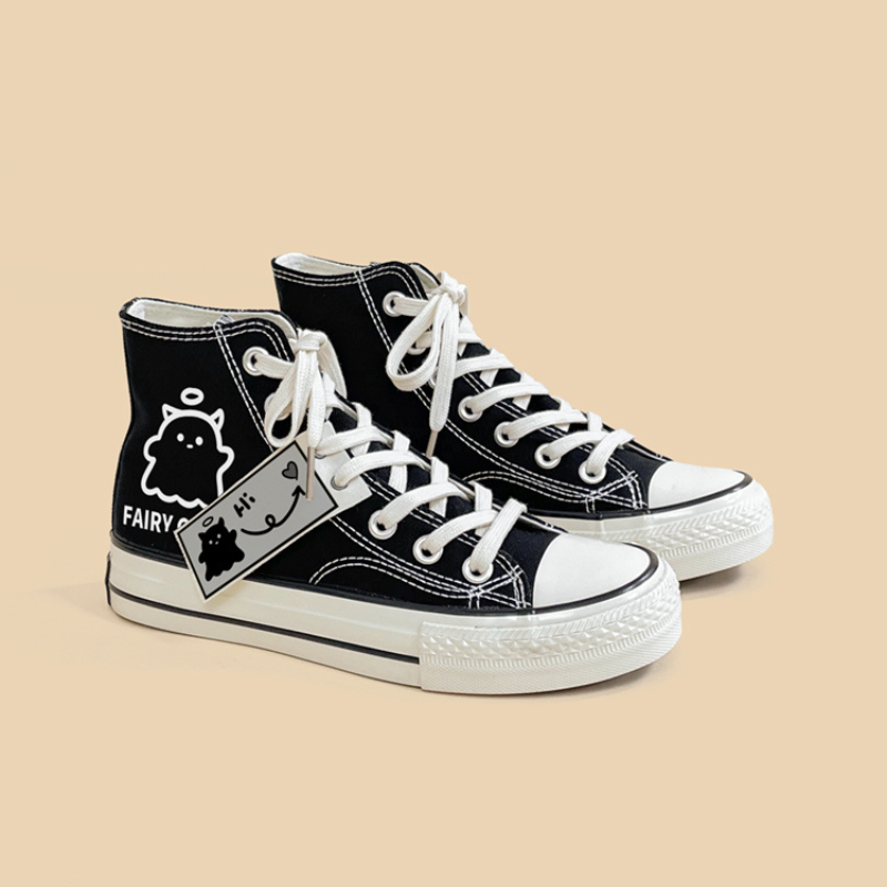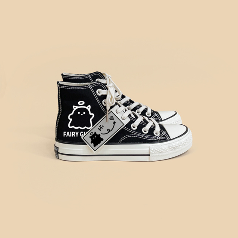 Combining comfort. fashion. and cuteness. the original FAIRY GHOST Black Casual Canvas Shoes will be your best choice for everyday wear or special occasions.