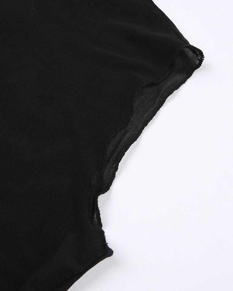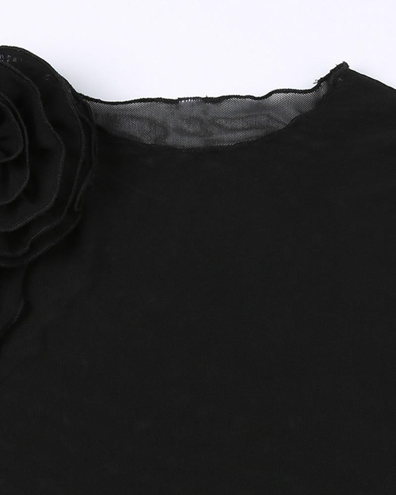 Details: Mesh top with rose design