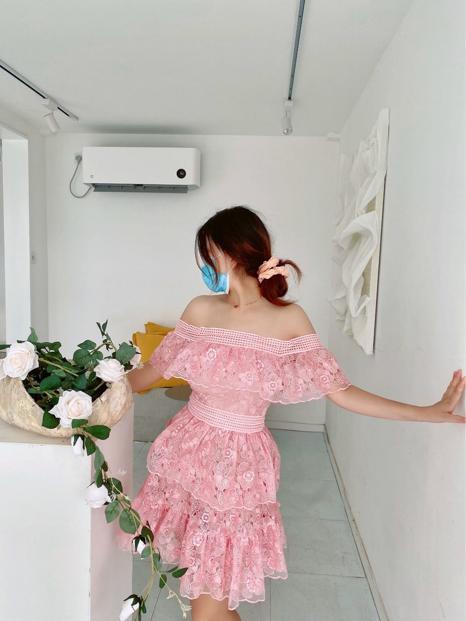 Stunning tiered dresses for romantic evening dates! This exquisite floral embroidered off shoulder tiered mini dress in our boutique will make your day date even sweeter. Completed with a crocheting off-the-shoulder neckline with a ruffled & scalloped surrounding. a high rise waistband. a fit-and-flare silhouette with a zip closure at back and layered flounces. high quality organza fabric with embroidered flowers. and a short dress cut with a scalloped hem. this enchanting French style mini dress. for women with tastes. is effortlessly chic and workable for so many occasions beyond spring and summer. Wear this sweet date outfit with matching heels for a cute look.