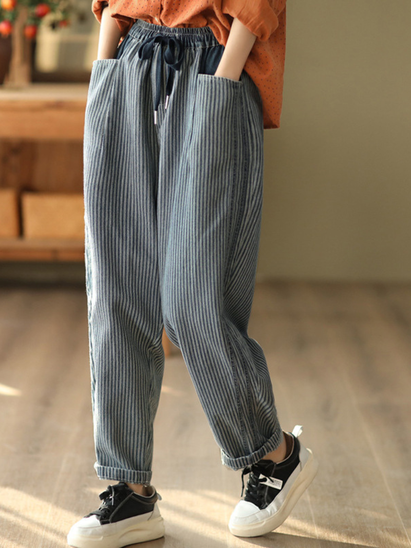 Women's loose elastic waist bottom pants are a comfortable and versatile clothing item that can be worn for a variety of occasions. These pants are designed to fit loosely around the hips and thighs. providing a relaxed and comfortable fit. The elastic waistband ensures a secure and comfortable fit. while also allowing for easy on and off. These pants are available in a wide range of colors and styles. making it easy to find a pair that fits your personal style. They can be dressed up with a blouse and heels for a formal event or dressed down with a t-shirt and sneakers for a casual day out. The loose fit and soft. breathable fabric make these pants perfect for running errands. lounging at home. or even as a comfortable alternative to traditional work pants.