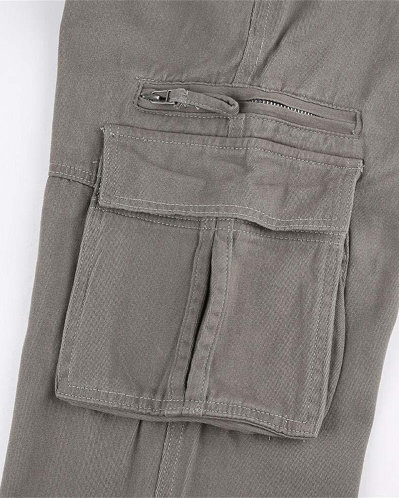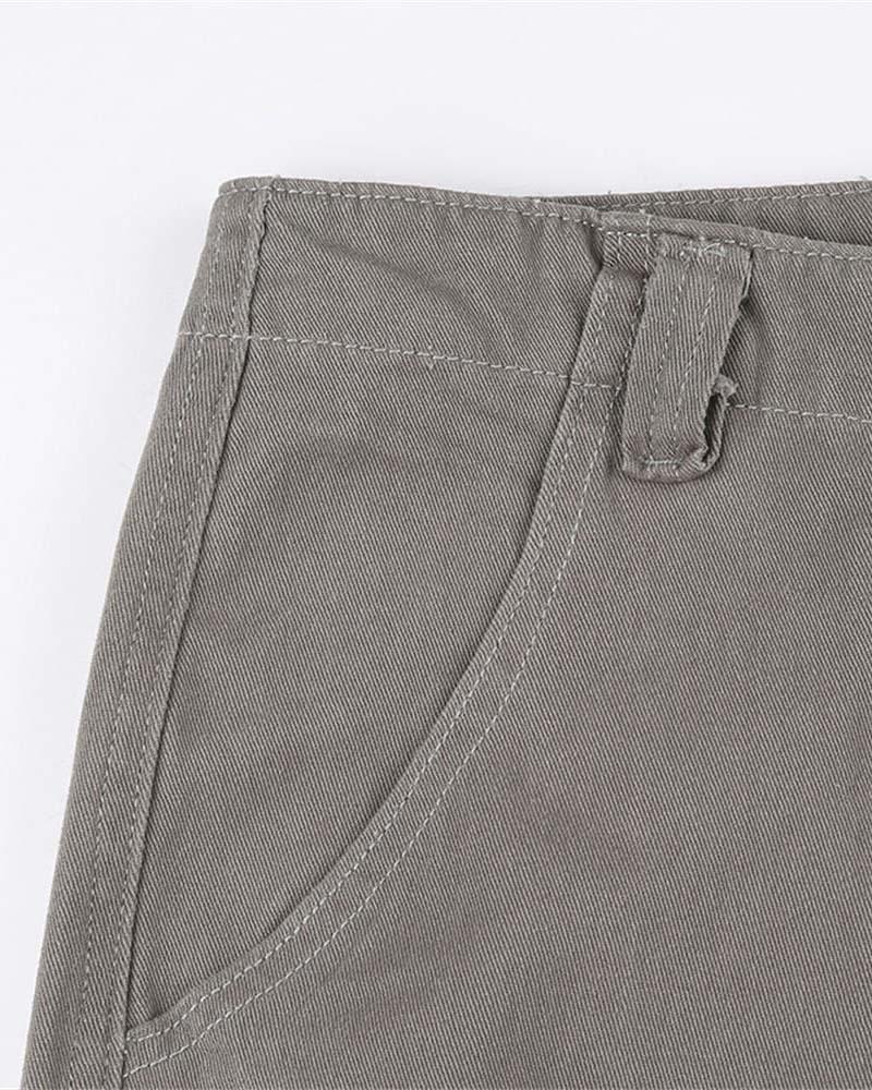 Details: Long gray cargo pants with side pockets design