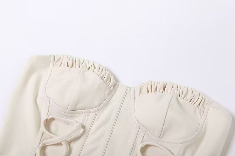 Our stunning sexy crop strapless top effortlessly transitions from dinner dates to the bar. What sets this trendy sleeveless top apart are its unique curved hemline and sparkling lace-up design. adding a touch of glamour. With its sweetheart neckline and corsetry boning strategically placed to cinch the waist and create a flattering silhouette. this tube top is truly exceptional. The satin fabric. with its sheer allure. is fully lined for optimal comfort. Non-slip detailing ensures a secure fit. allowing you to move with ease. The back zipper provides convenient and easy wear. while the non-removable padded cups offer support and enhance your natural shape. Wear yours with our boutique high-waist wide jeans to accentuate the sexy vibe.