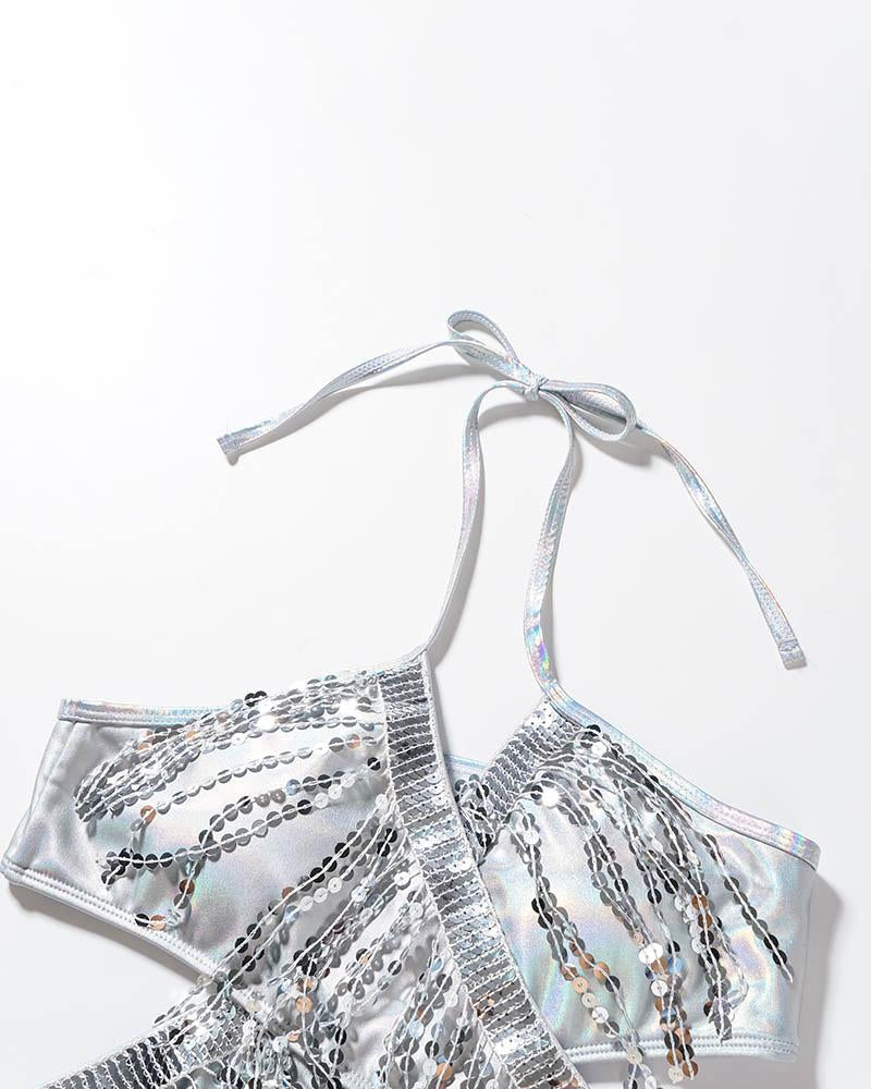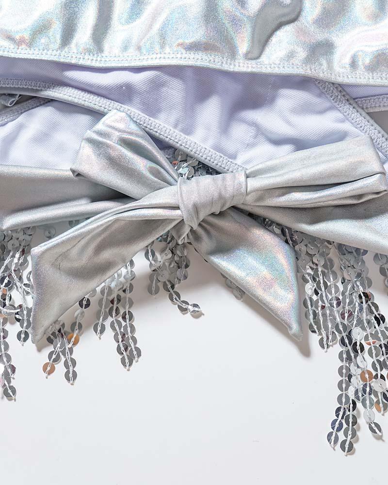 Details: Bikini coord set with glimmering design. coming with bralet and underwear