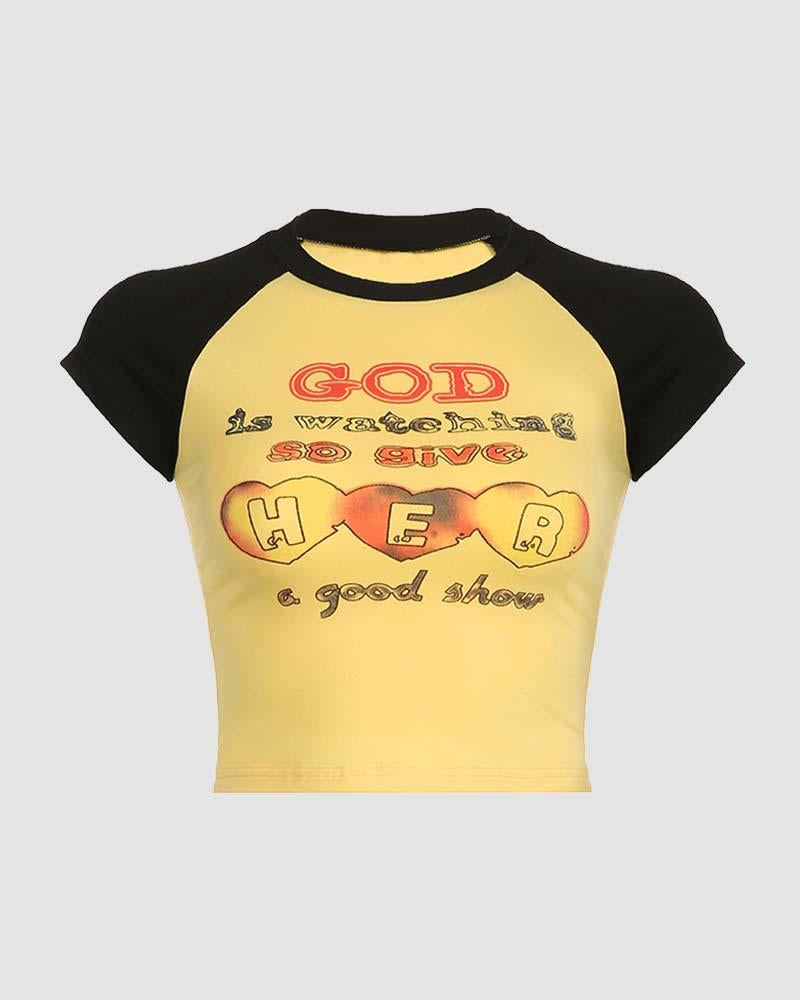 Details: Yellow short-sleeve T-shirt with meme letter print