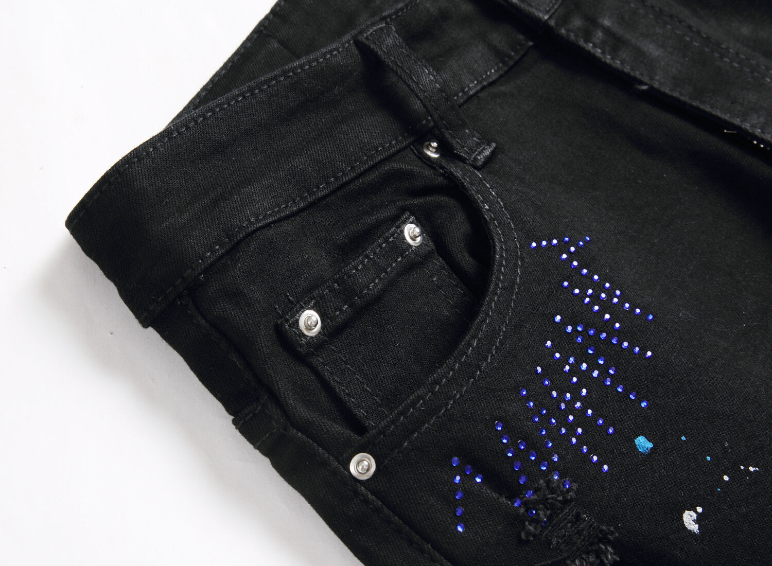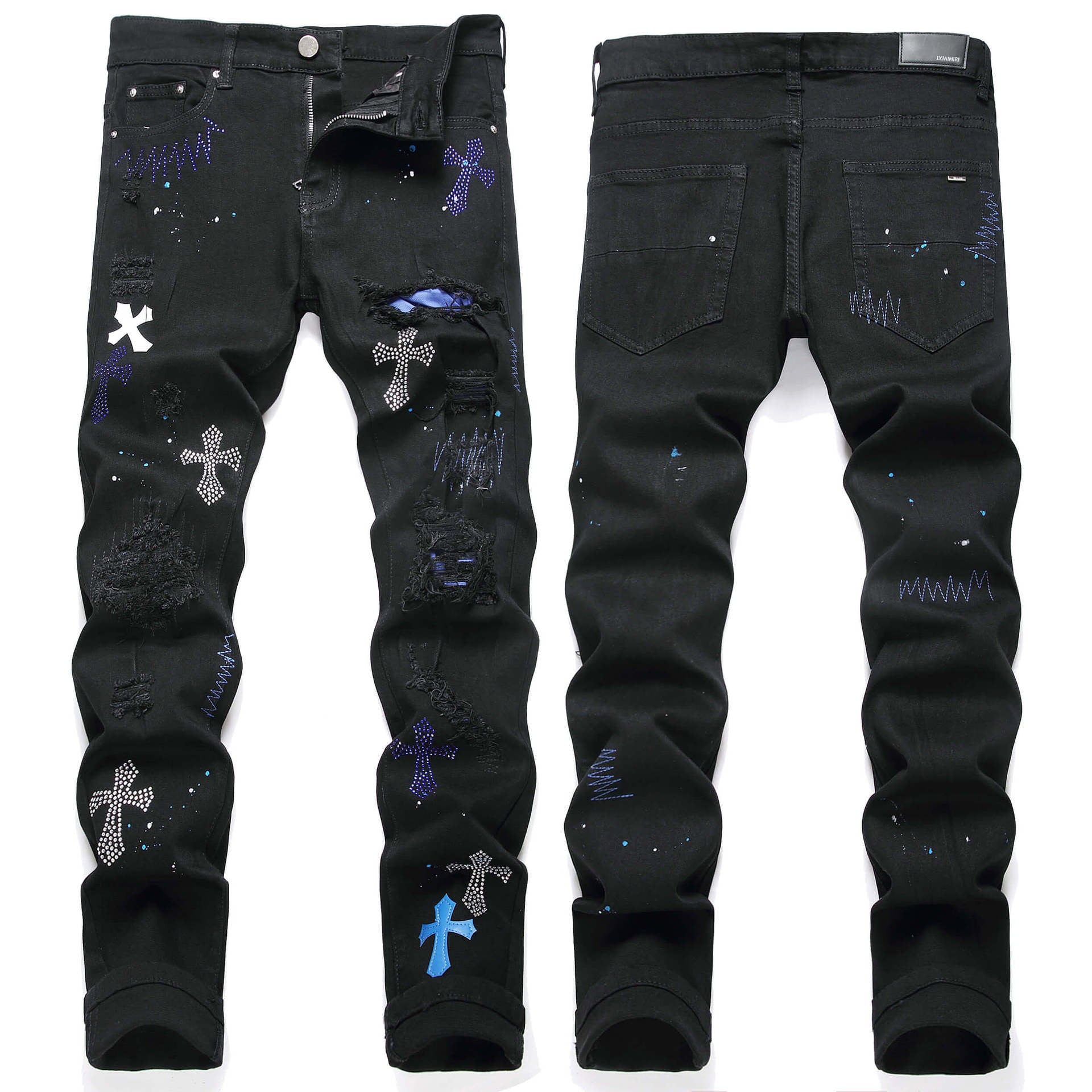 These jeans combine established forms with modern day trends to make you stand out with effortless confidence. Featuring a vintage-inspired Y2K style. they're perfect for those that want to express their individual sense of flair. Plus. the intricate embroidery and crystal embellishments add a touch of glamour and sophistication.