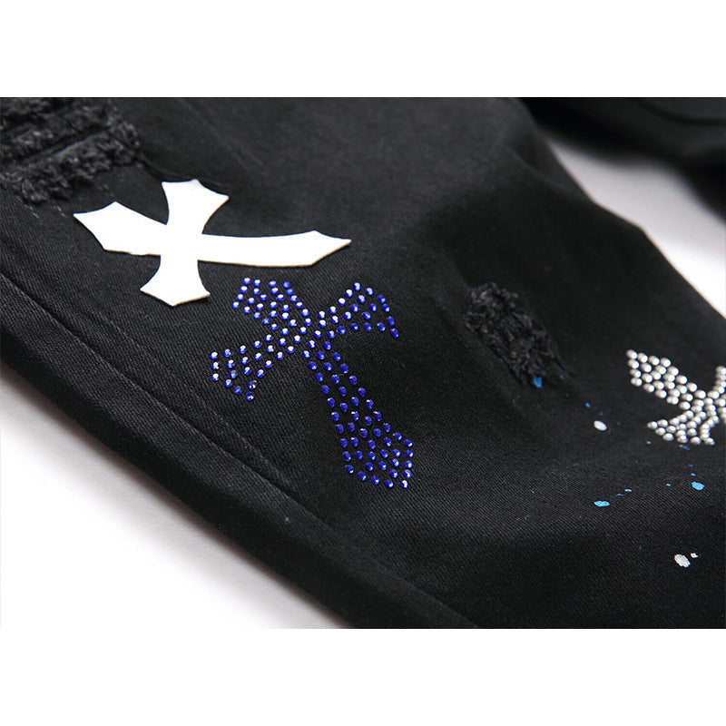 Introducing our Gold Crystal Embellished Men's Jeans from the 2023 Autumn Collection âââ€?a timelessly stylish and iconic wardrobe essential!