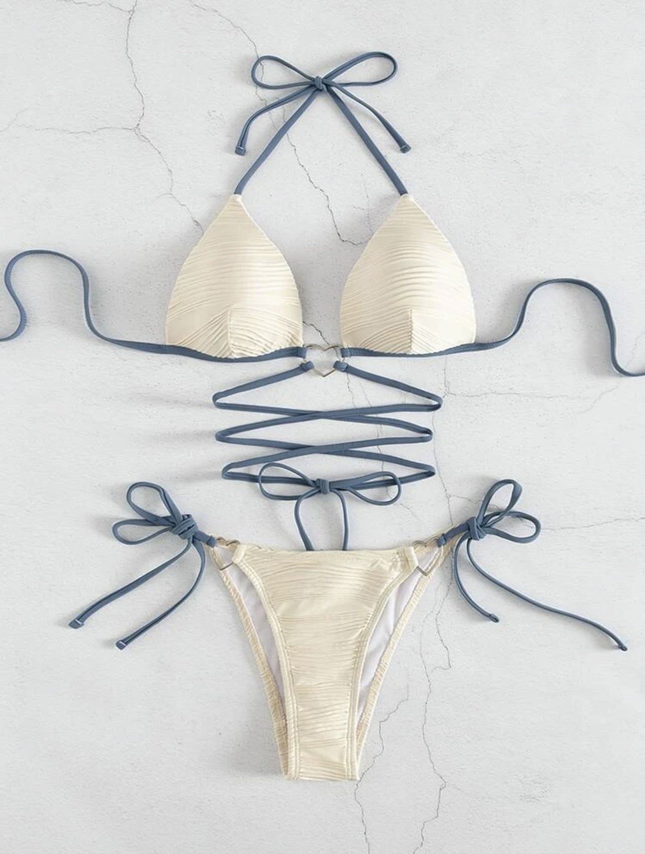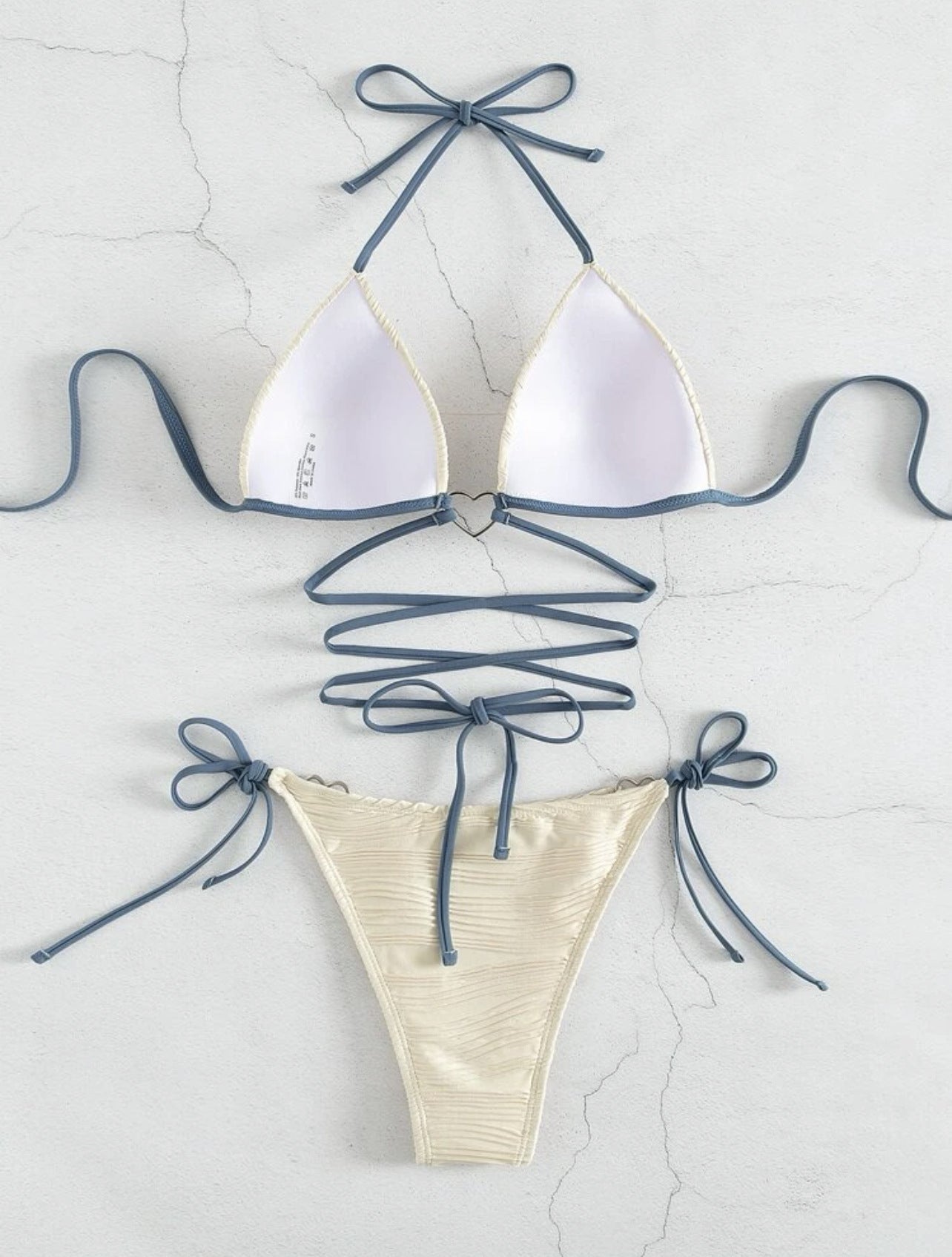 Experience the ultimate comfort and style with ourHeart-decorated halterneck bikini! Made from Spandex and Polyester. this bikini is soft and durable. The solid pattern offers a classic and versatile look. while the wire-free support promises a natural and flattering fit. Embrace both love and hate in this must-have bikini!