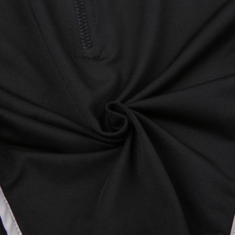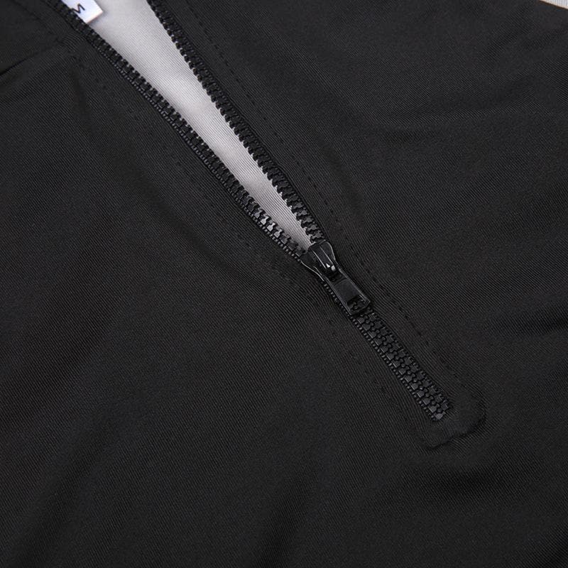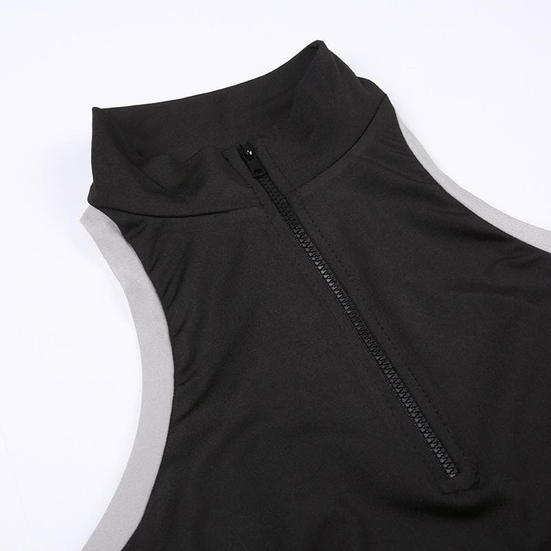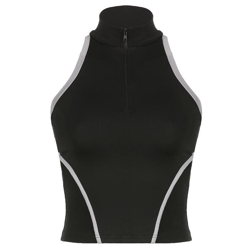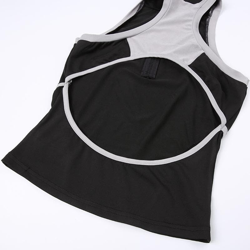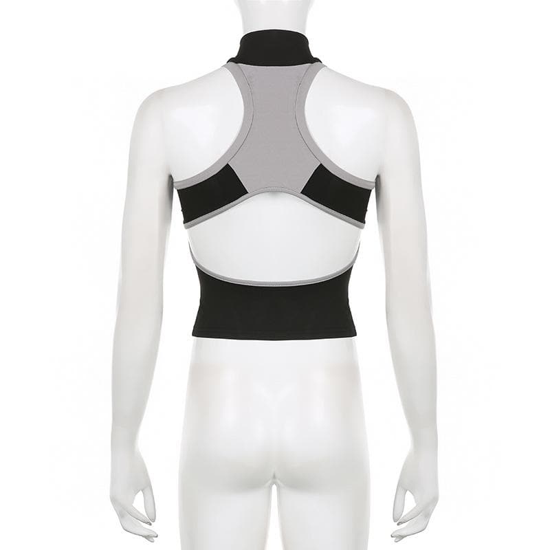 High neck contrast sleeveless zip-up hollow out backless top