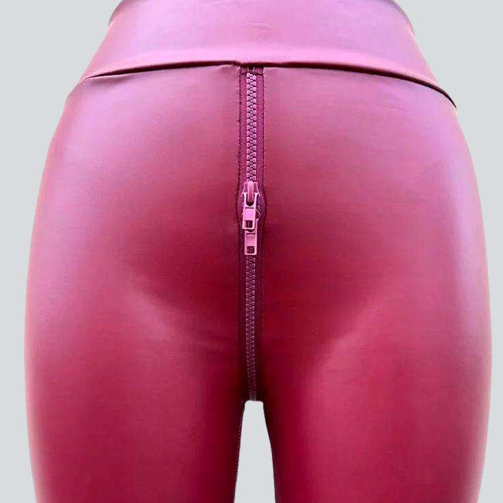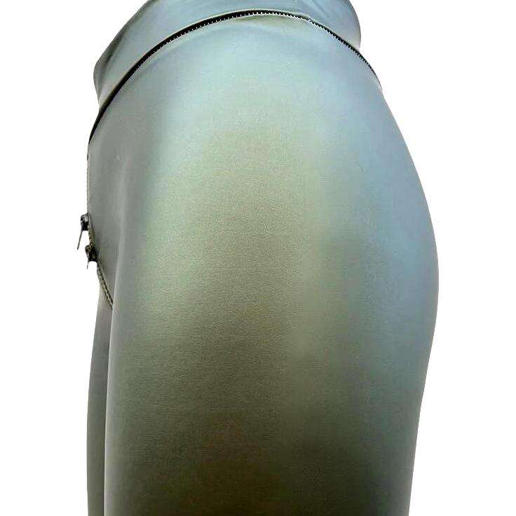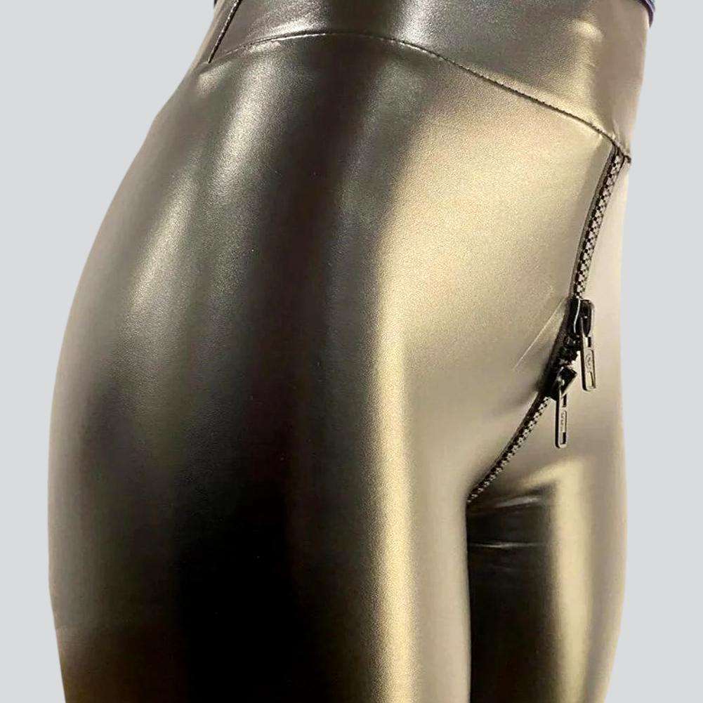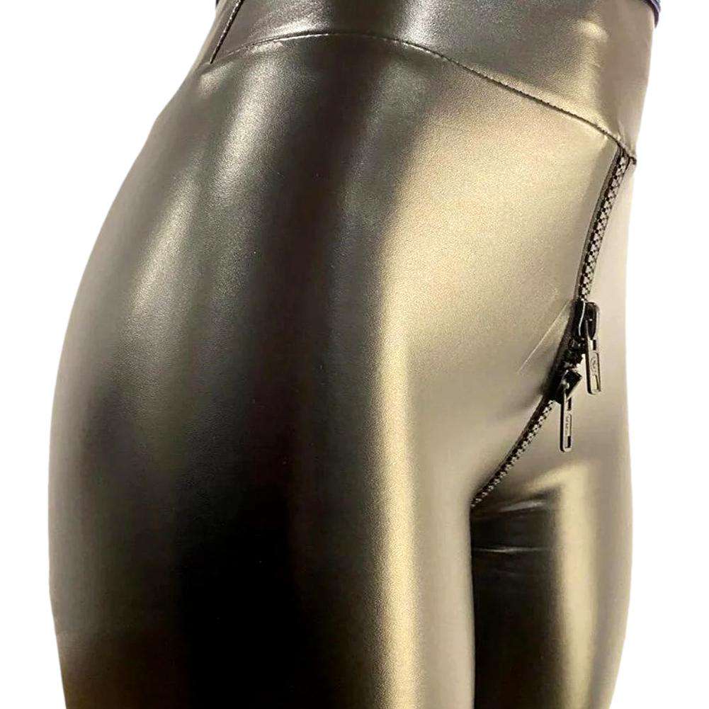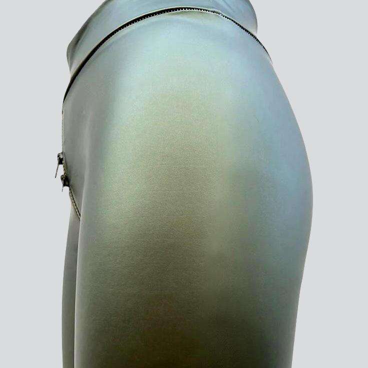 This unique piece is textured to give you an iconic Y2K look with a vogue twist. The skinny cut and elevated rise ensure a flattering silhouette. while the coated fabric adds a touch of texture and the zipper and rubber closure provide a perfect fit.