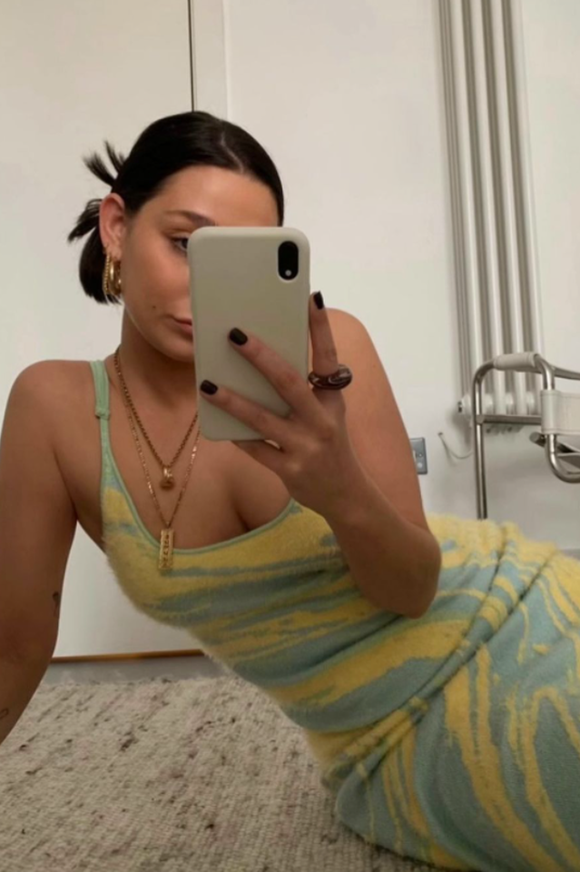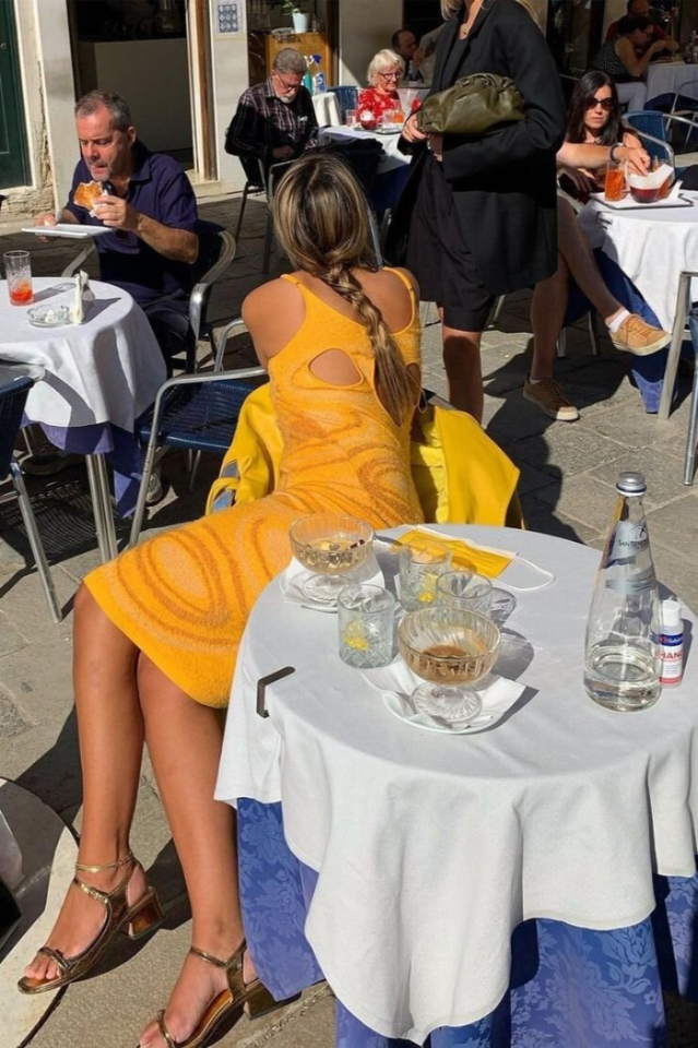 Knitted 3/4 length dress with back cut-out detail. By using the unique knit technique. this dress is a perfect trans-seasonal style and a great layering piece.