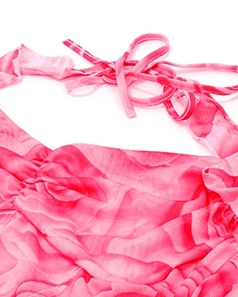 Details: Long-sleeve halter corset top with pink rose graphical pattern design