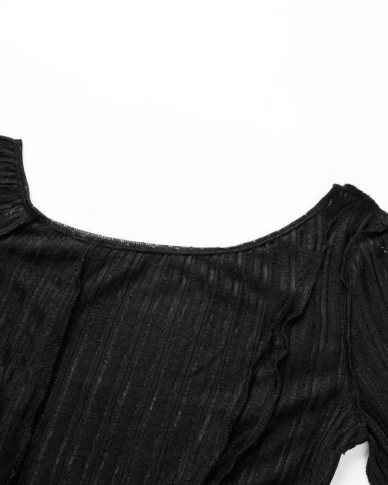 Details: Long-sleeve knitted top with asymmetric shoulder design