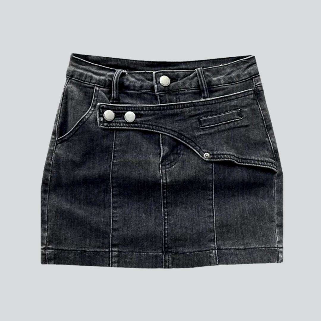 Introducing the 2023 Spring-Summer Collection's stunning layered closure retro denim skirt a homage to the retro Y2K style!