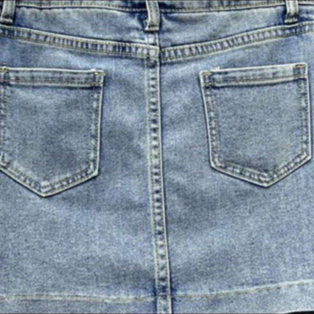 Bring the past into the present with this vintage Y2K-trend denim skirt. Perfect for any outdoor adventure. or simply to add trend to your everyday wardrobe. this skirt is sure to make a lasting impression. Step into the future with confidence and style it's time to make history!