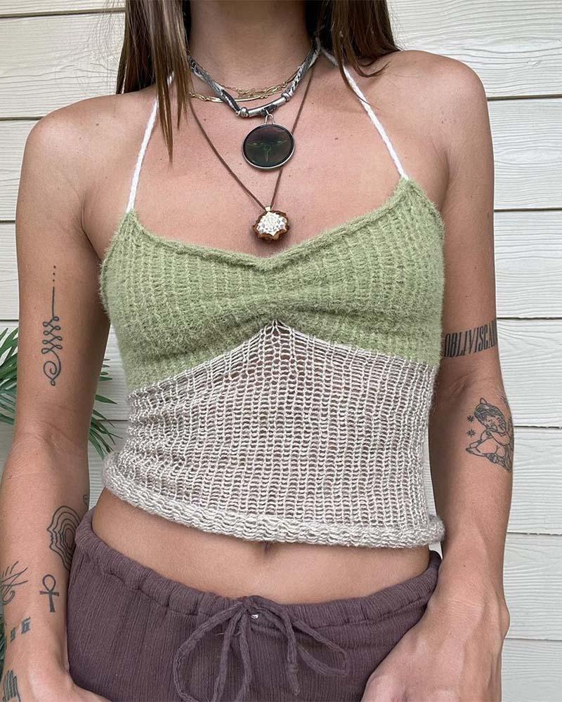 Details: Crochet halter top with matching color design