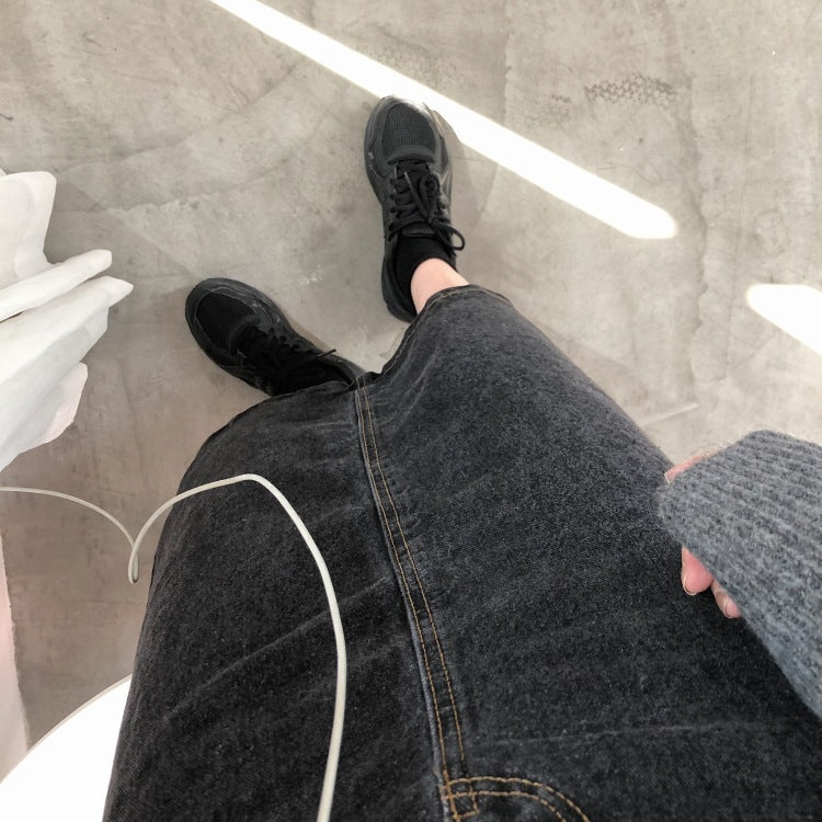 Introducing the new 2023 Spring-Summer Collection's elongated casual denim skirt. a perfect expression of casual style! Fashioned from premium quality denim. this versatile skirt features a high-waisted silhouette and a sleek slim fit for optimal comfort. With its unique stonewashed distressed pattern and zipper & button closure. this casual skirt is the ideal choice for any occasion.
