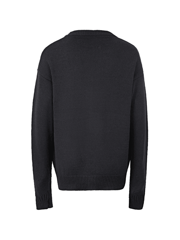 Description: Features a design of cartoon pattern to the front. made from fuzzy knit fabric. with ribbed trims and drop shoulders design.
