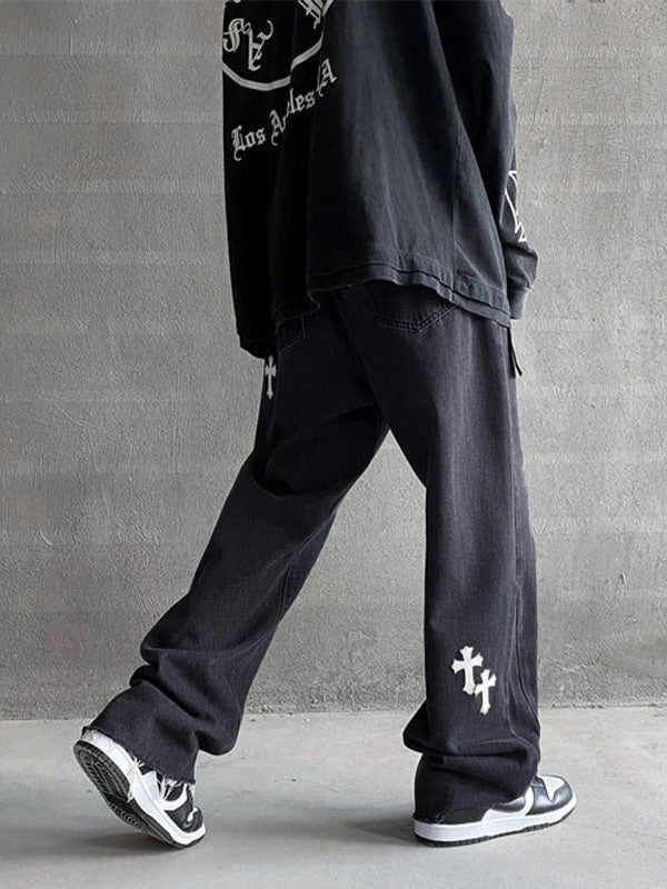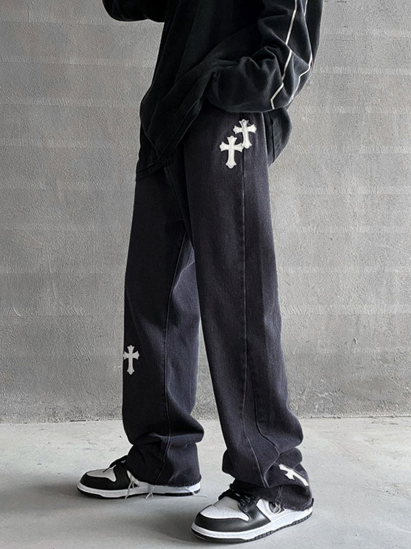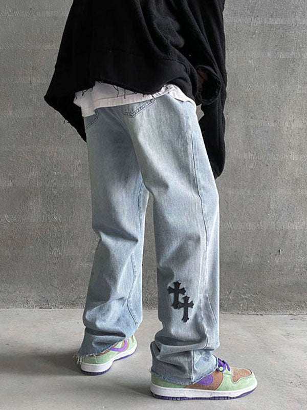 Design: Zip & Button Fastening. Functional Pockets. Mid Rise Waistline. Multi Belt Loops. Chrome Hearts Patched At Front & Back. Raw Cut Hem