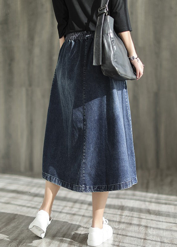 Modern Blue Asymmetrical Elastic Waist Pockets Patchwork Denim Skirt Fall