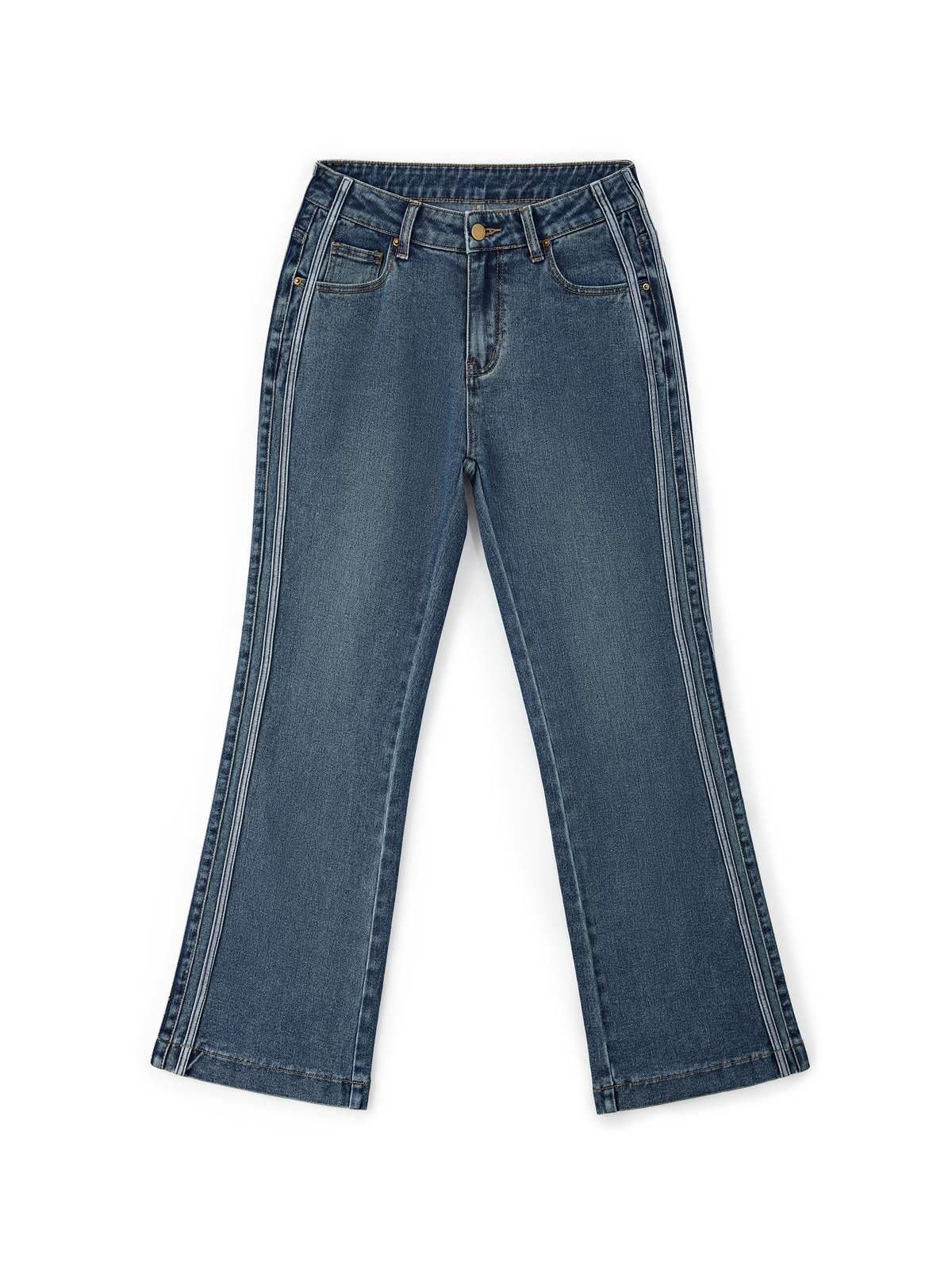 -Paneled detail: The contrast striped paneling along the sides adds a touch of edge to these jeans. while the 5 pockets and metal button zip fasten provide functional and stylish features.