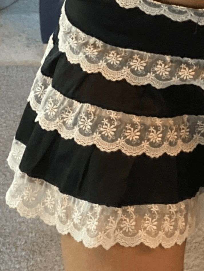 Style: Casual/Street/Y2K/Preppy/Vintage/Sweet Fabric Content: Polyester Blend Fit Type: Regular fit Length: Above Knee This classy mini skirt is perfect for spring and summer. Its relaxed silhouette features a beautiful patchwork lace design and a convenient zip fastening at the back. Elevate your style with this trendy and versatile skirt.